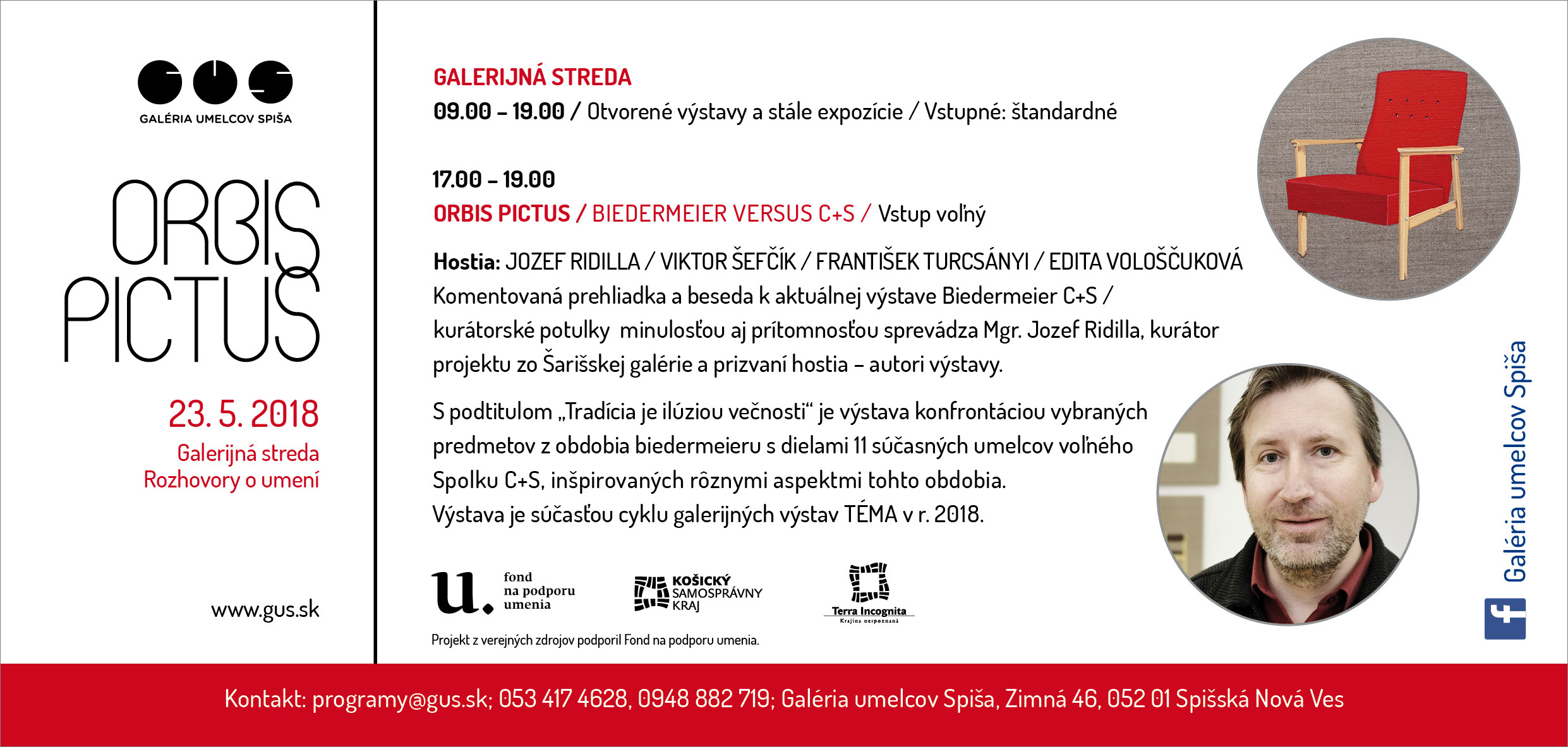 Komentovaná prehliadka a beseda k výstave Biedermeier C+S /kurátorské potulky minulosťou aj prítomnosťou sprevádza Mgr. Jozef Ridilla, kurátor projektu a prizvaní hostia - autori výstavy. Cyklus stretnutí s umením reflektuje aktuálne výstavy a prezentuje výtvarníkov zo zbierky i z prezentačných činností. Výstava Biedermeier C+S je súčasťou cyklu galerijných výstav TÉMA v r. 2018. Projekt z verejných zdrojov podporil Fond na podporu umenia. Hostia: J. Ridilla,V. Šefčík,F. Turcsányi,E. Vološčuko