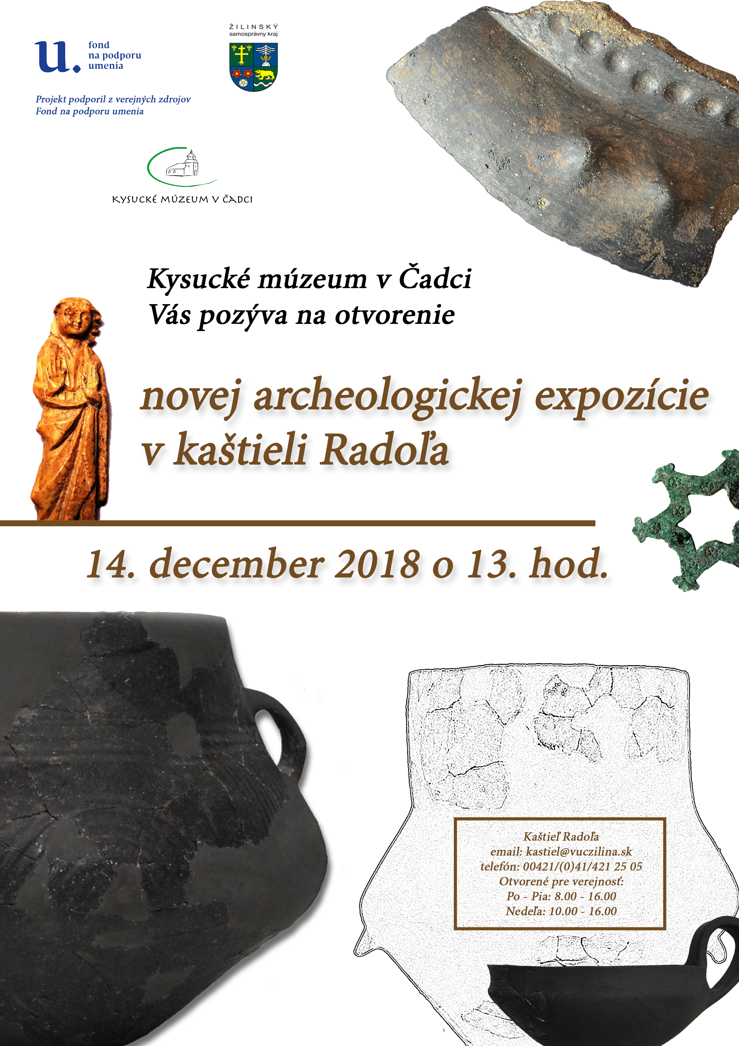 Kysucké múzeum v Čadci Vás pozýva na otvorenie novej archeologickej expozície v kaštieli Radoľa, ktoré sa uskutoční dňa 14. decembra 2018 o 13. hodine. Projekt z verených zdrojov podporil Fond na podporu umenia.