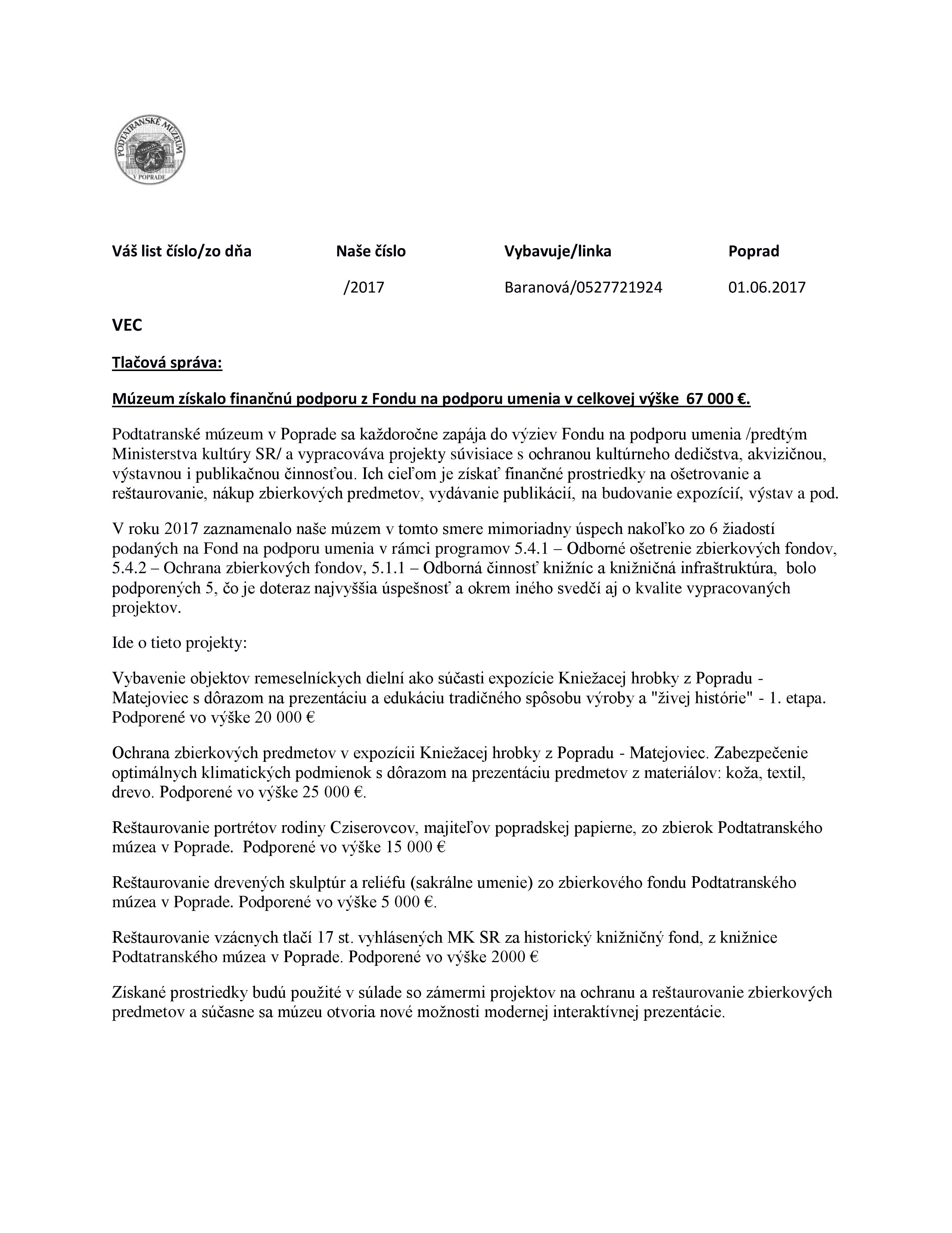 Miesto a termín konania: Banská Bystrica, Slovenská republika / 01.06.2017