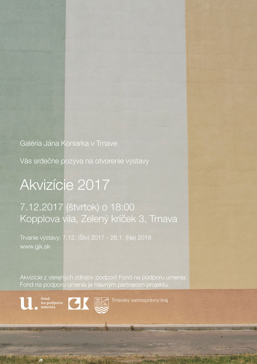 Akvizícia diptychu sklenených objektov spolupráce autorskej dvojice Palo Macho a Ivan Csudai s názvom Irónia imaginácie - dielo vystavené na výstave Akvizície 2017 v Kopplovej vile Galérie Jána Koniarka v Trnave od 7.12.2017 - 28.1.2018.