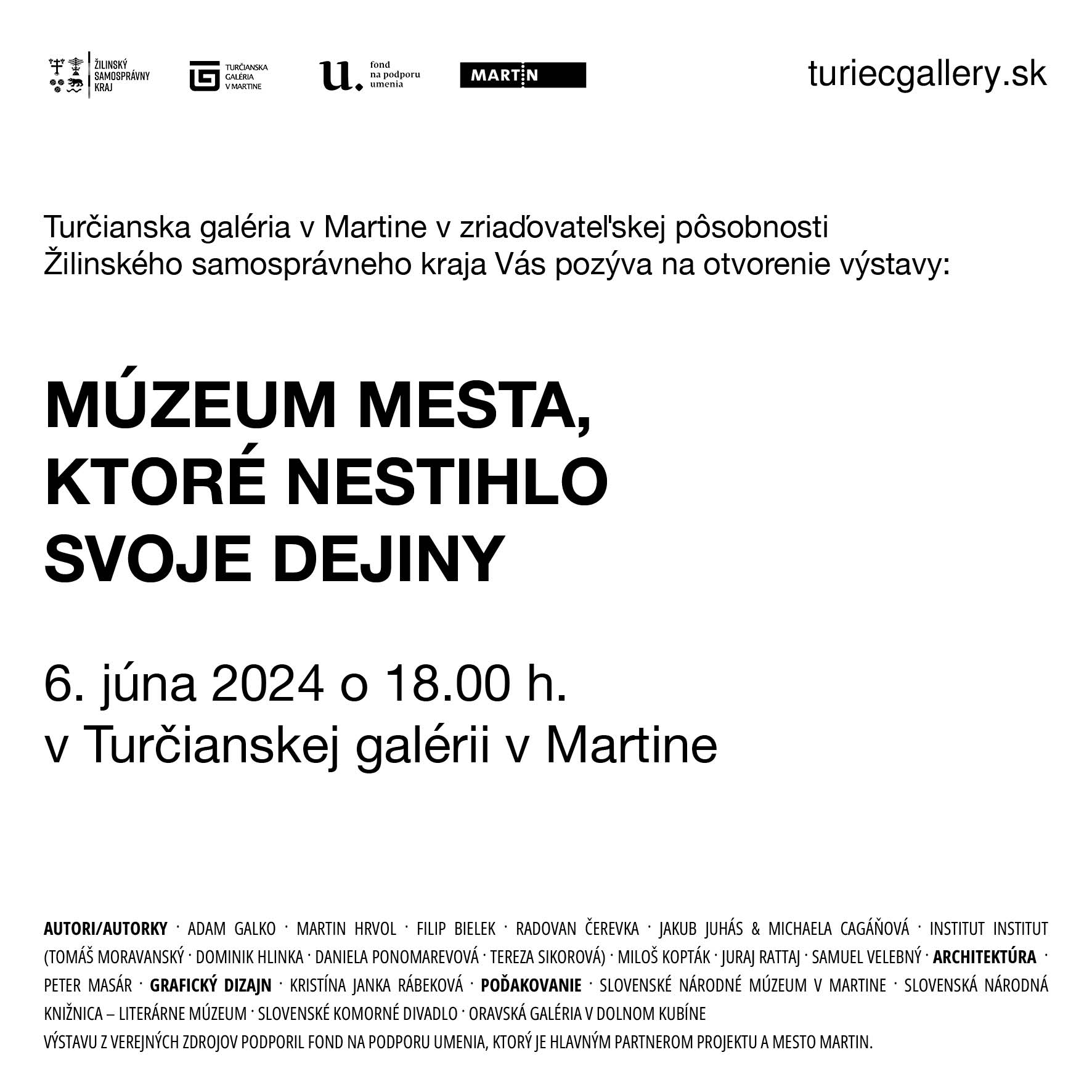 Výstava Múzeum mesta, ktoré nestihlo svoje dejiny prináša tému múzea ako fenoménu spojeného so zbieraním, katalogizovaním a vystavovaním. Ústredný motív čerpá predovšetkým z genia loci mesta Martin, obsiahnutého v množstve zbierkových fondov a expozícií rôznorodého zamerania na jeho území. Otvára sa tým tiež téma skúmajúca efekt múzea z odvrátenej strany: ako systému selekcie toho, čo sa do múzea nedostalo, čo sa nestalo súčasťou výstavnej expozície alebo toho, čo sa nestihlo stať múzeom.