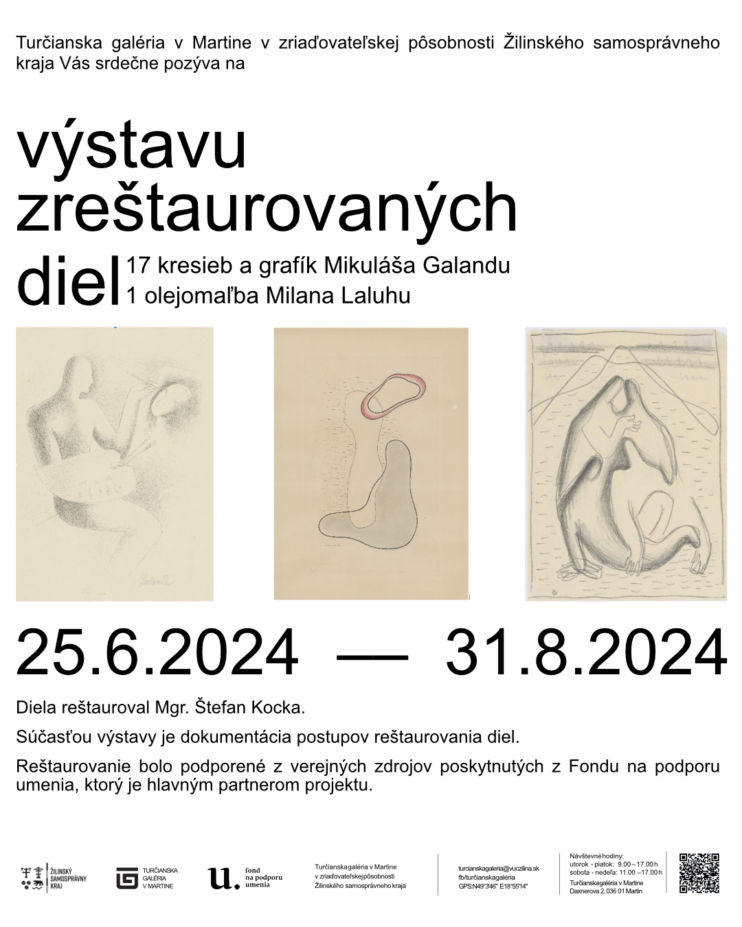 Reštaurovanie 32 kresieb a grafík Mikuláša Galandu a 1 olejomaľby Milana Laluhu