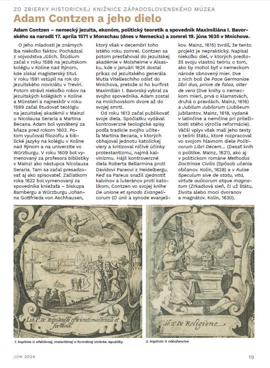 Štúdia - článok o zreštaurovanej knihe, publikovaný v júni 2024: ŠEVČÍK, Milan. Adam Contzen a jeho dielo. In: Novinky z radnice, roč. 35, 2024, jún, s. 19-20, ISSN 1339-8989. https://www.trnava.sk/content/files/NzR/NzRjun2024.pdf