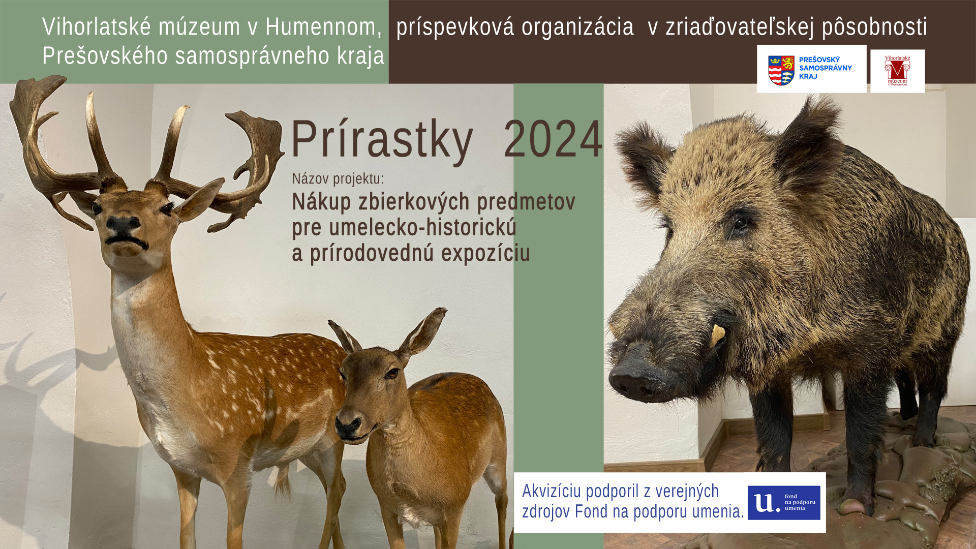 Akvizícia veľkorozmerných dermoplastických preparátov (3 ks) pre prírodovednú expozíciu Vihorlatského múzea v Humennom a 10 ks vzoriek koží na drevených podložkách na neformálne vzdelávanie v múzeu.