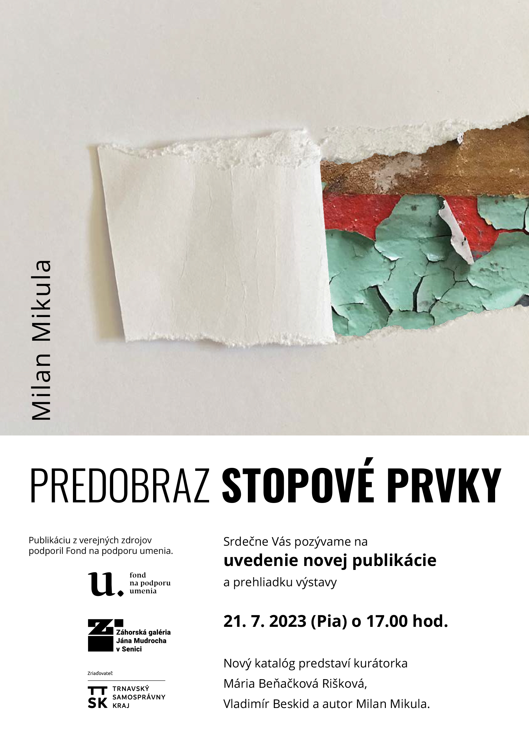 Uvedenie dvojjazyčnej publikácie k výstave s názvom Milan Mikula PREDOBRAZ - stopové prvky.