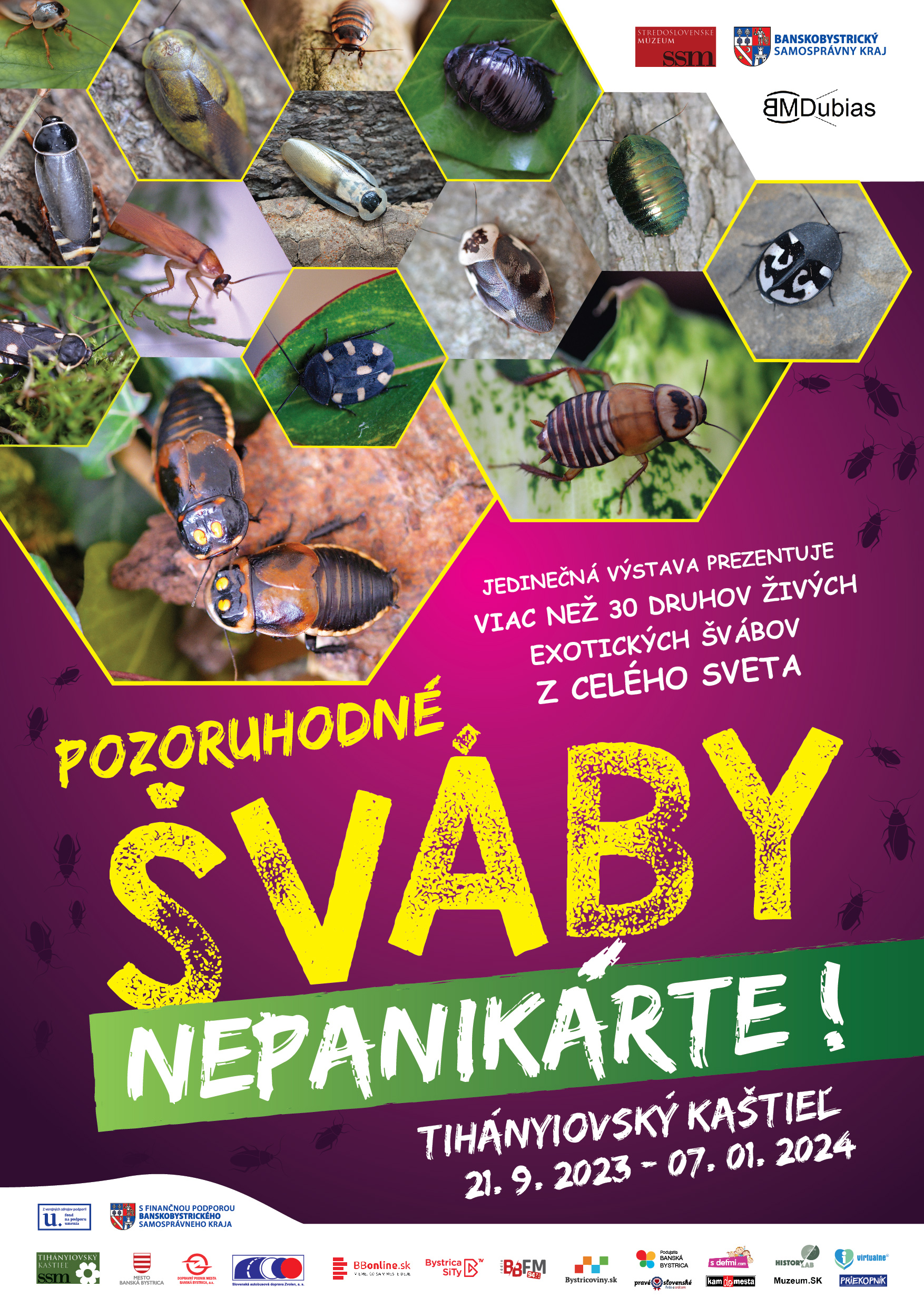 Výstava Pozoruhodné šváby – nepanikárte odprezentuje v Stredoslovenskom múzeu – Tihányiovskom kaštieli viac než 30 druhov a spomedzi nich - stovky živých, exotických švábov z rôznych kútov sveta.