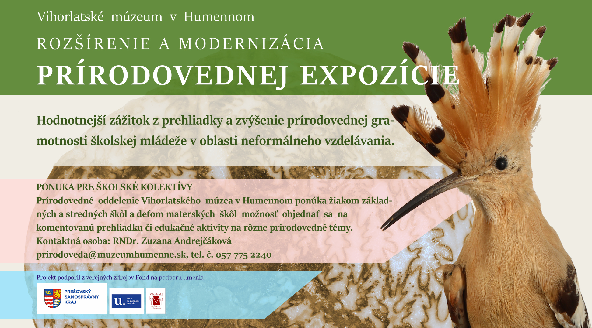 Aj v roku 2024 sme pre návštevníkov nášho múzea zabezpečili nákup nových výstavných exponátov zaujímavých živočíchov. Zakúpili sme päť dermoplastických preparátov domácich oviec, kôz a hovädzieho dobytka. Realizácia prebehla vďaka úspešnému projektu, ktorý z verejných zdrojov podporil Fond na podporu umenia a Banskobystrický samosprávny kraj.