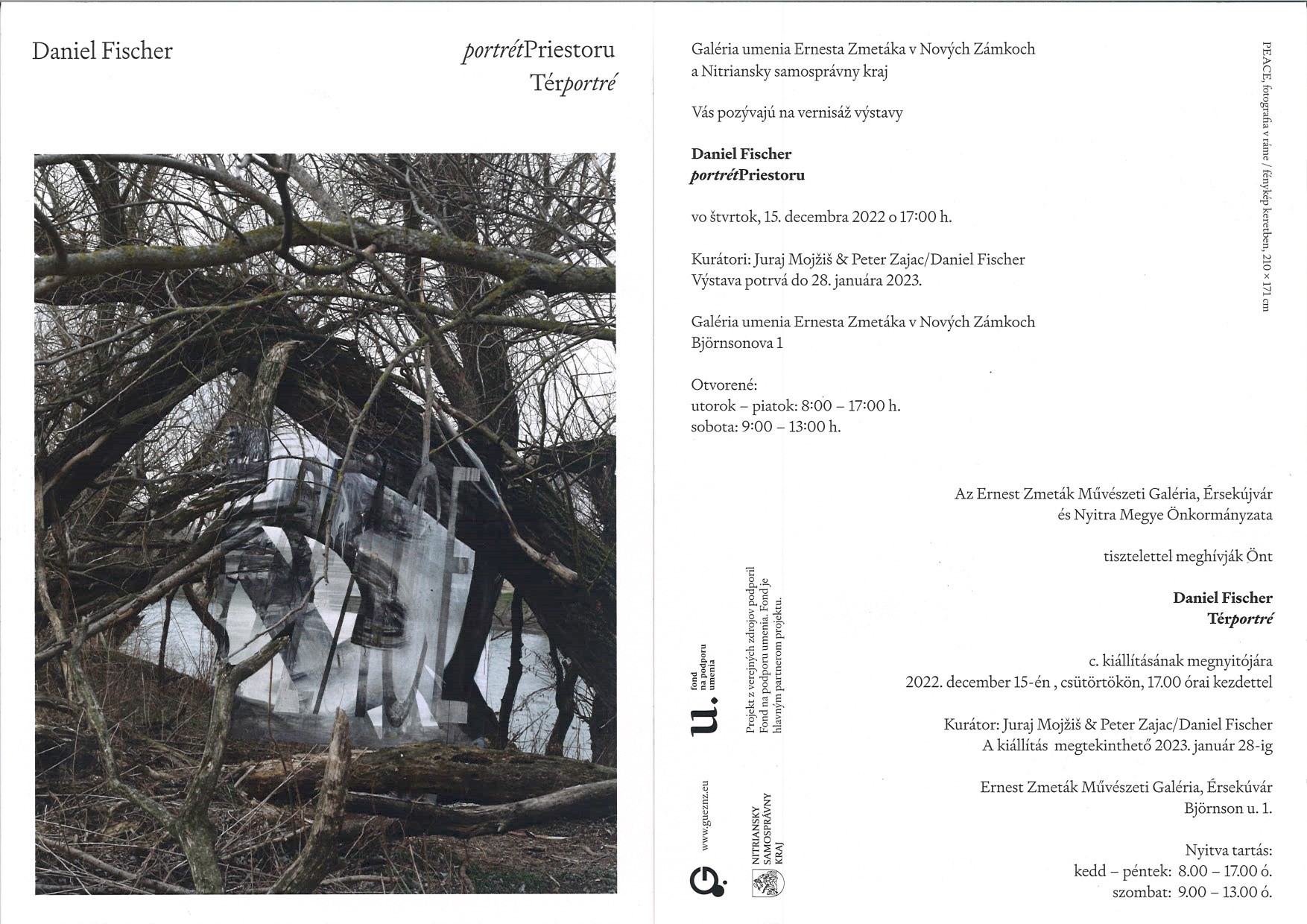 Galéria umenia Ernesta Zmetáka v Nových Zámkoch Vás pozývajú na vernisáž výstavy Daniel Fischer portrétPriestoru vo štvrtok 15. decembra 2022 o 17,00 h. Kurátori: Juraj Mojžiš & Peter Zajac / Daniel Fischer. Výstava potrvá do 28. januára 2023.