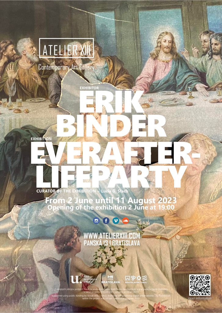 V piatok 2. 6. 2023 od 19:00 do 22:00 ťa radi privítame na otvorení výstavy diel Erika Bindera s názvom EVERAFTERLIFEPARTY.