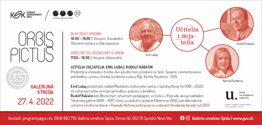 Prezentácia a beseda o tvorbe, ako aj kultúrnom pôsobení na Spiši. Spojené s komentovanou prehliadkou výstavy. Uvádza kurátorka výstavy Mgr. Kamila Paceková - GUS. Projekt z verejných zdrojov podporil Fond na podporu umenia.
