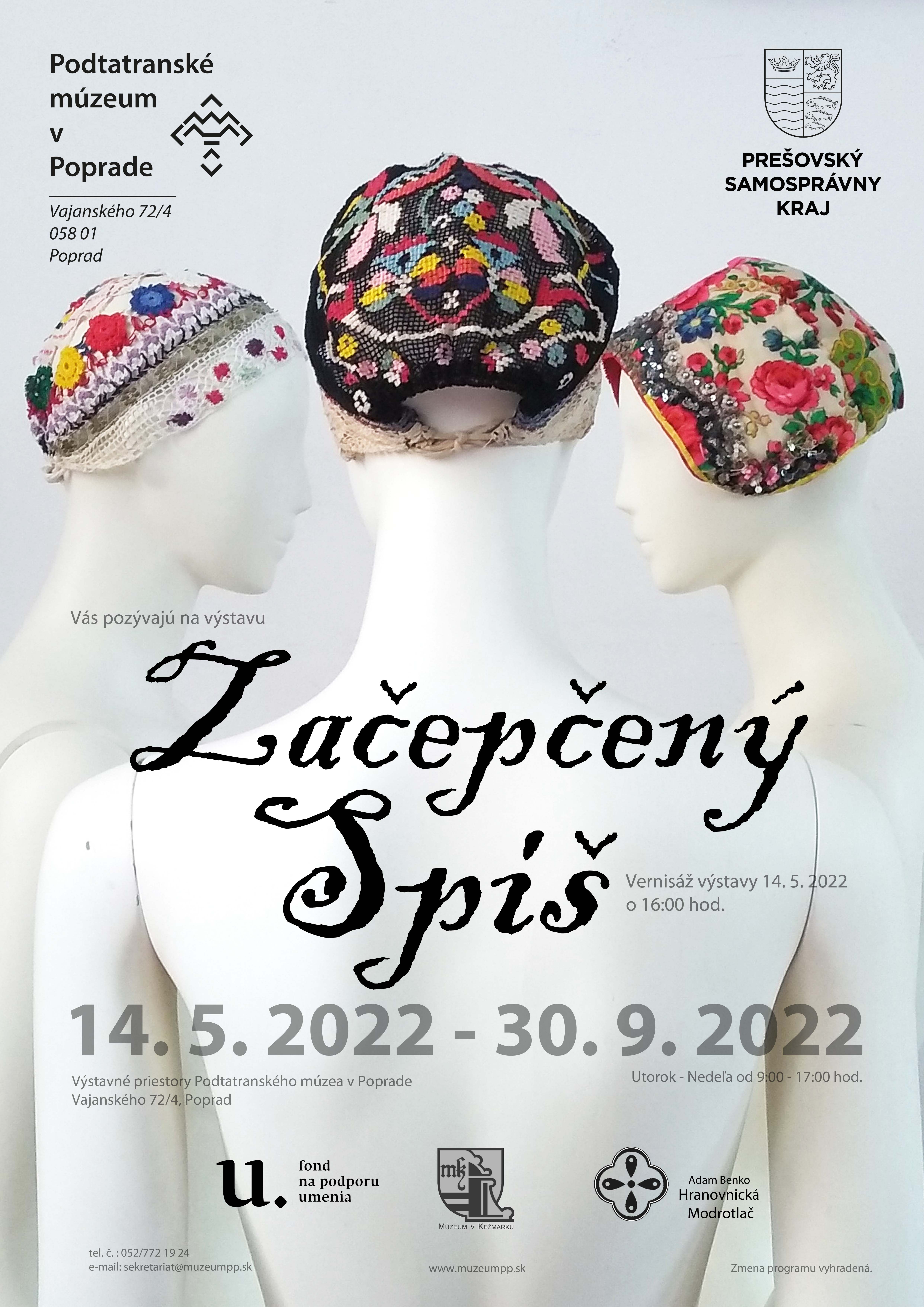 Podtatranské múzeum v Poprade pozýva návštevníkov na výstavu Začepčený Spiš, ktorá prezentuje tradíciu pokrývok hlavy vydatých žien na Spiši prostredníctvom čepcov z obcí bývalej Spišskej župy. Okrem tradičných čepcov zo Spiša sú súčasťou výstavy aj meštianske typy čepcov, šatky a dievčenské party. Vernisáž výstavy sa uskutoční v rámci Noci múzeí a galérií 14. mája 2022 v sobotu o 16:00 s bohatým kultúrnym programom a vystúpením folklórneho súboru Zespół Folklorystyczny „Hajduki“ z Łapsz Wyżny