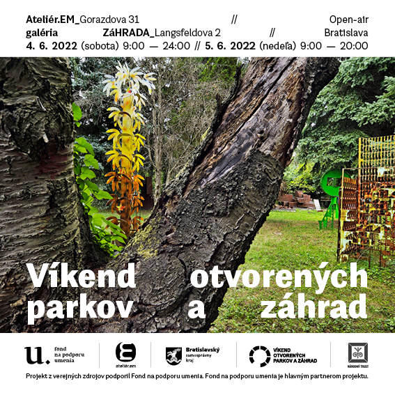Ateliér.EM a galéria ZáHRADA sa každoročne zapája do obľúbeného podujatia Víkend otvorených parkov a záhrad. Cieľom je predstaviť a vyzdvihnúť význam zelených plôch na Slovensku, v prípade galérie ZáHRADA prepojených s umením.