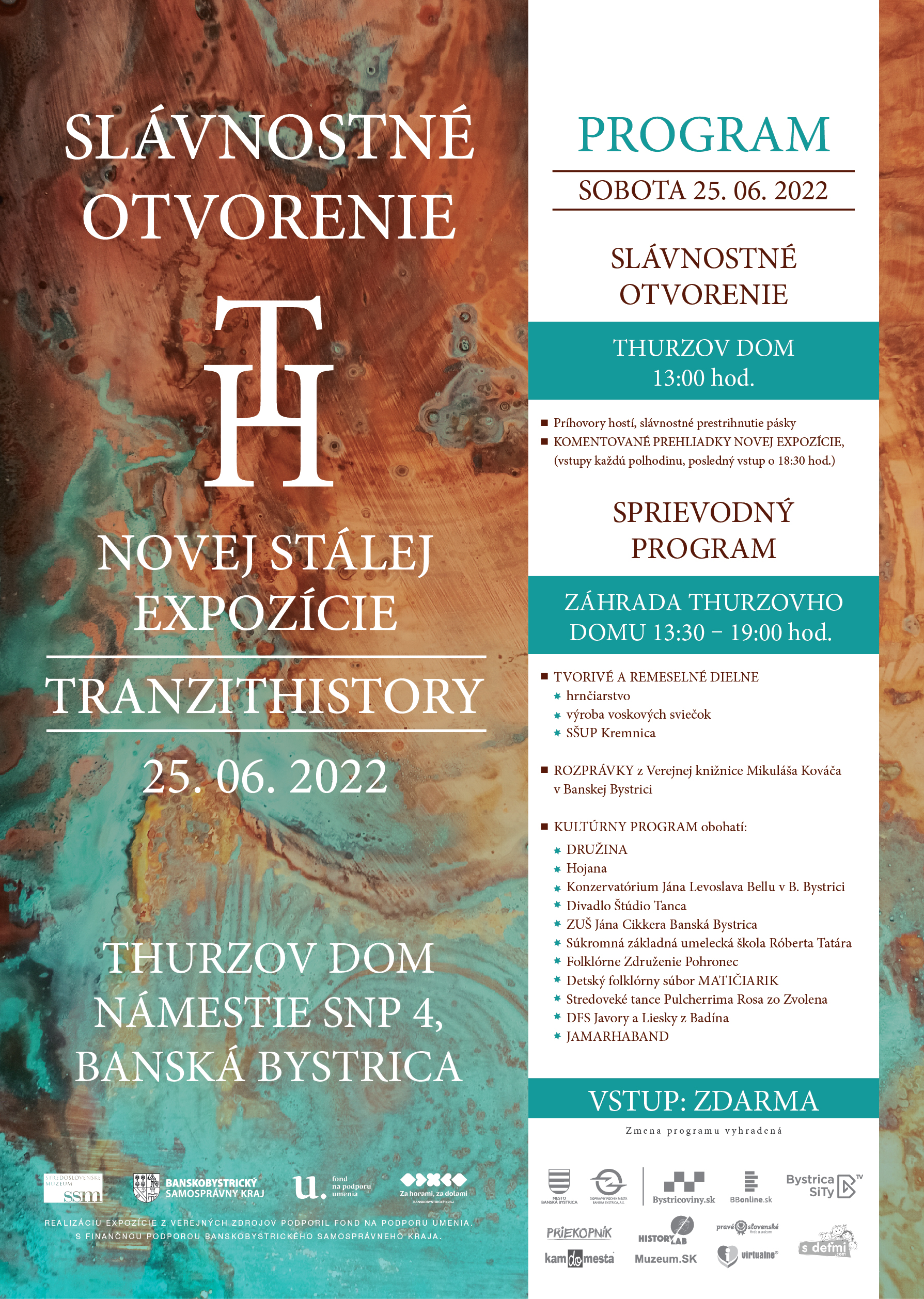 Thurzov dom má novú stálu expozíciu, návštevníkov prevedie naprieč históriou. Nová stála expozícia s názvom Tranzithistory, umiestnená v unikátnych priestoroch Thurzovho domu, vizuálne príťažlivou formou prevedie návštevníka históriou v jej originálnej aj inovatívnej podobe. Obsahuje viac ako dvetisíc zbierkových predmetov, dobových dokumentov, interaktívnych hračiek a moderných vizuálnych prvkov.