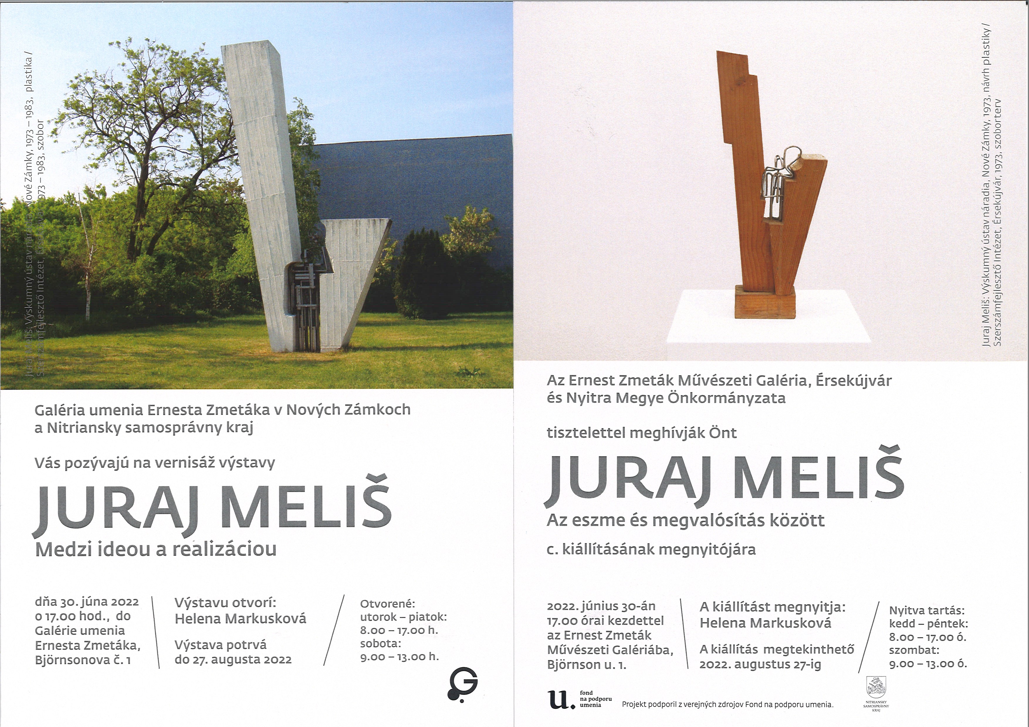 Galéria umenia Ernesta Zmetáka v Nových Zámkoch Vás pozýva na vernisáž výstavy JURAJ MELIŠ - Medzi ideou a realizáciou, dňa 30. júna 2022 o 17.00 hod. Výstavu otvorí Helena Markusková, kurátorka výstavy. Výstava potrvá do 27. augusta 2022. Otvorené: utorok - piatok 8.00 - 17.00 h., sobota 9.00 - 13.00 h.