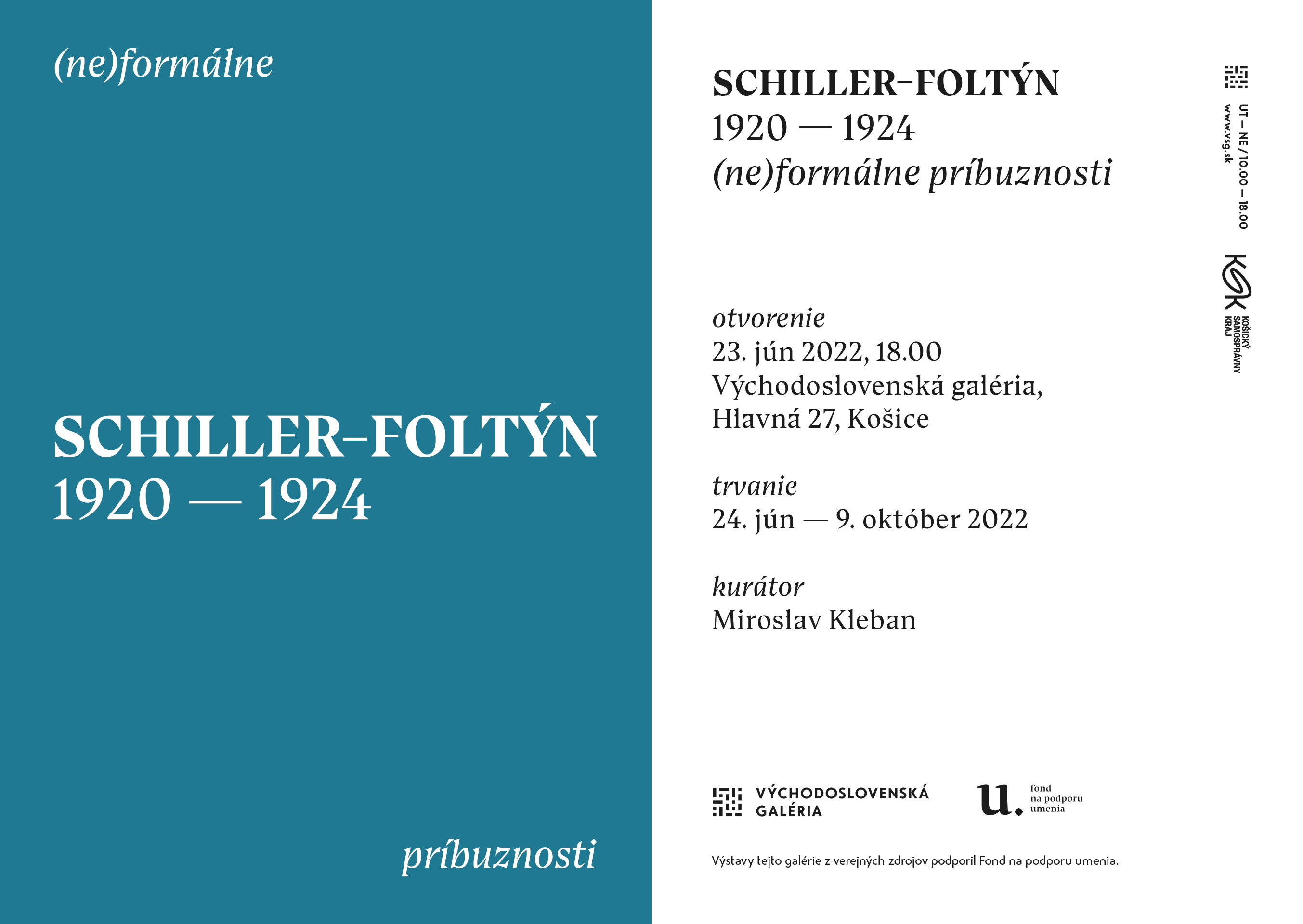 Výstava dvoch významných predstaviteľov Košickej moderny – českého maliara Františka Foltýna a maďarského maliara Gejzu Schillera je komornou expozíciou výberu diel z ich pôsobenia na východnom Slovensku v rokoch 1920 – 1924.