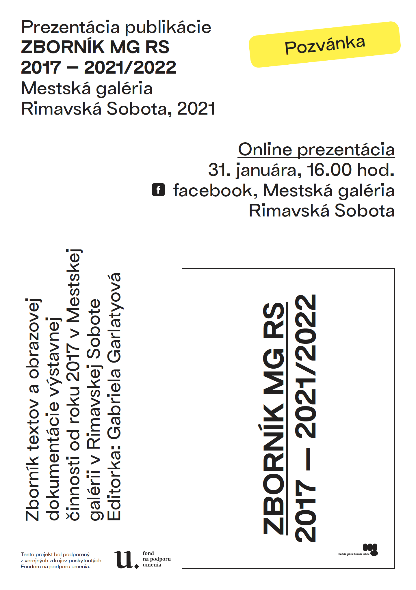 Zborník textov a obrazovej dokumentácie výstavnej činnosti od roku 2017 v Mestskej galérii v Rimavskej Sobote. Vydanie publikácie Zborník MG RS 2017 – 2021/2022 Vydavateľ: Mestská galéria Rimavská Sobota, 2021 ISBN 978-80-971240-2-1 Editorka: Gabriela Garlatyová