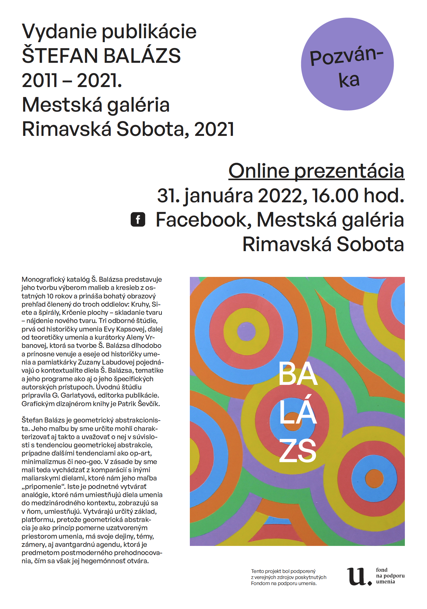 Vydanie publikácie Štefan Balázs, 2011 – 2021. Mestská galéria Rimavská Sobota, 2021 ISBN 978-80-971240-3-8 Editorka: Gabriela Garlatyová Autorky textov: Gabriela Garlatyová, Eva Kapsová, Alena Vrbanová, Zuzana Labudová Grafický dizajn: Patrik Ševčík Recenzie: Mgr. Eva Pariláková, PhD., Mgr. Katarína Bičanová Preklady do angličtiny, English Translations: Katarína Bičanová Jazykové korektúry, Proofreading: Martin Ceber