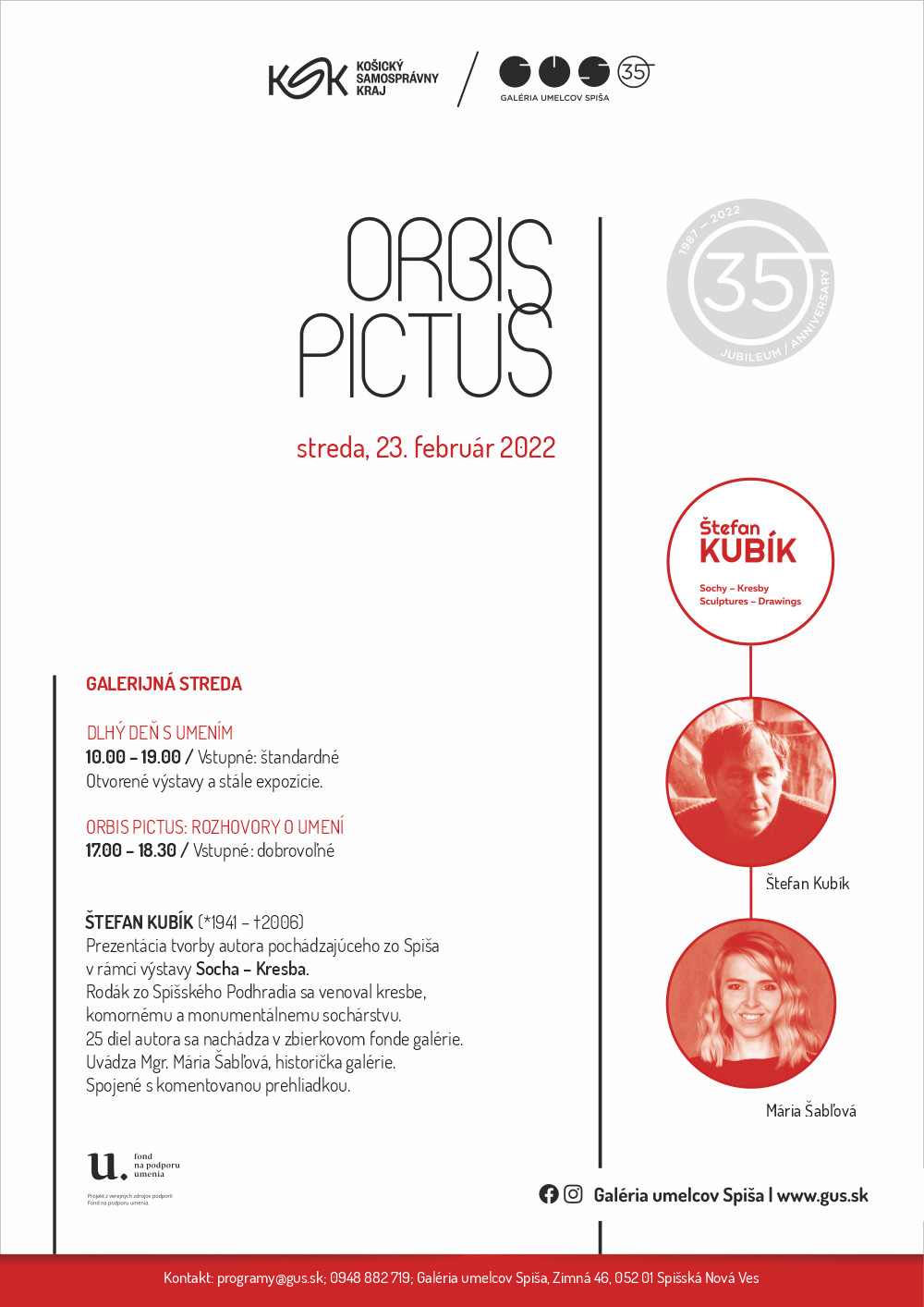 Prezentácia tvorby autora Štefana Kubíka pochádzajúceho zo Spiša v rámci výstavy Štefan Kubík: Sochy - Kresby. Rodák zo Spišského Podhradia sa venoval kresbe, komornému a monumentálnemu sochárstvu. 25 diel autora sa nachádza v zbierkovom fonde galérie. Uvádza Mária Šabľová - GUS. Spojené s komentovanou prehliadkou výstavy. Projekt z verejných zdrojov podporil Fond na podporu umenia.