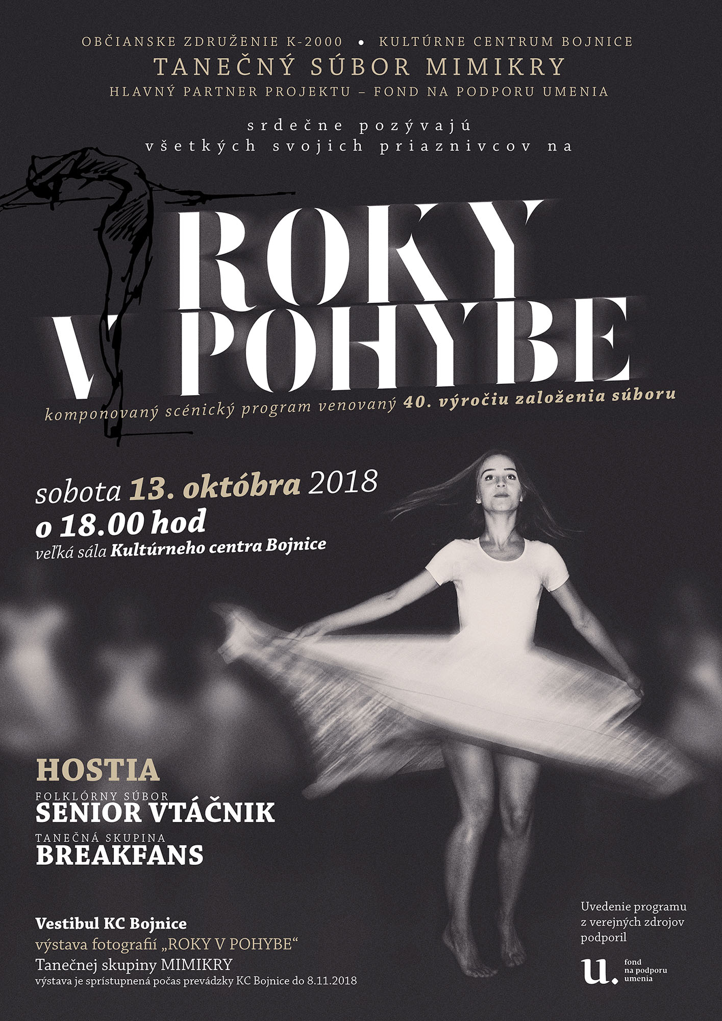 Komponovaný program choreografií scénického tanca vvenovaný 40. výročiu založenia Tanečného súboru Mimikry z Bojníc.