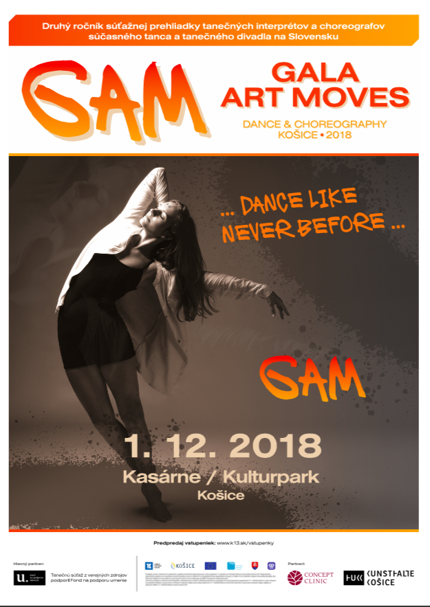 Druhý ročník súťažnej prehliadky mladých interprétov a choreografov Gala Art Moves 2018 je pokračovaním v podpore a motivácii mladých tanečných umelcov na Slovensku. Finále tanečnej súťaže Gala Art Moves 2018 sa v súčasnej dobe plánuje na 1.12.2018 v Kašárne/Kulturpark v Košiciach.
