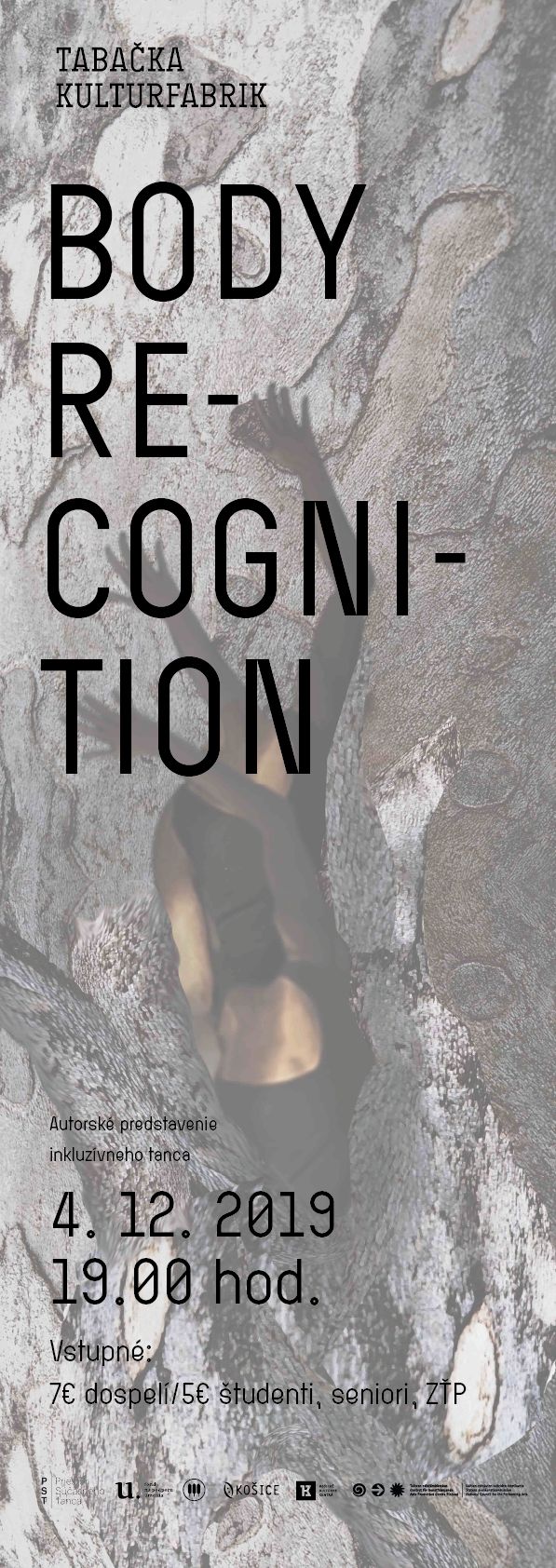 BODY RECOGNITION Premiéra autorského predstavenia inkluzívneho tanca z produkčnej dielne PST-Priestor Súčasného Tanca, Košice. Ako môžeme byť so svojím telom a nie proti nemu. Môžeme ho prijať a vážiť si ho také aké je? Predstavenie je inšpirované telesnými odlišnosťami a odkazuje na myšlienku plne inkluzívnej prístupnej spoločnosti, ktorá je založená na možnostiach a tvorivých schopnostiach každého tela.