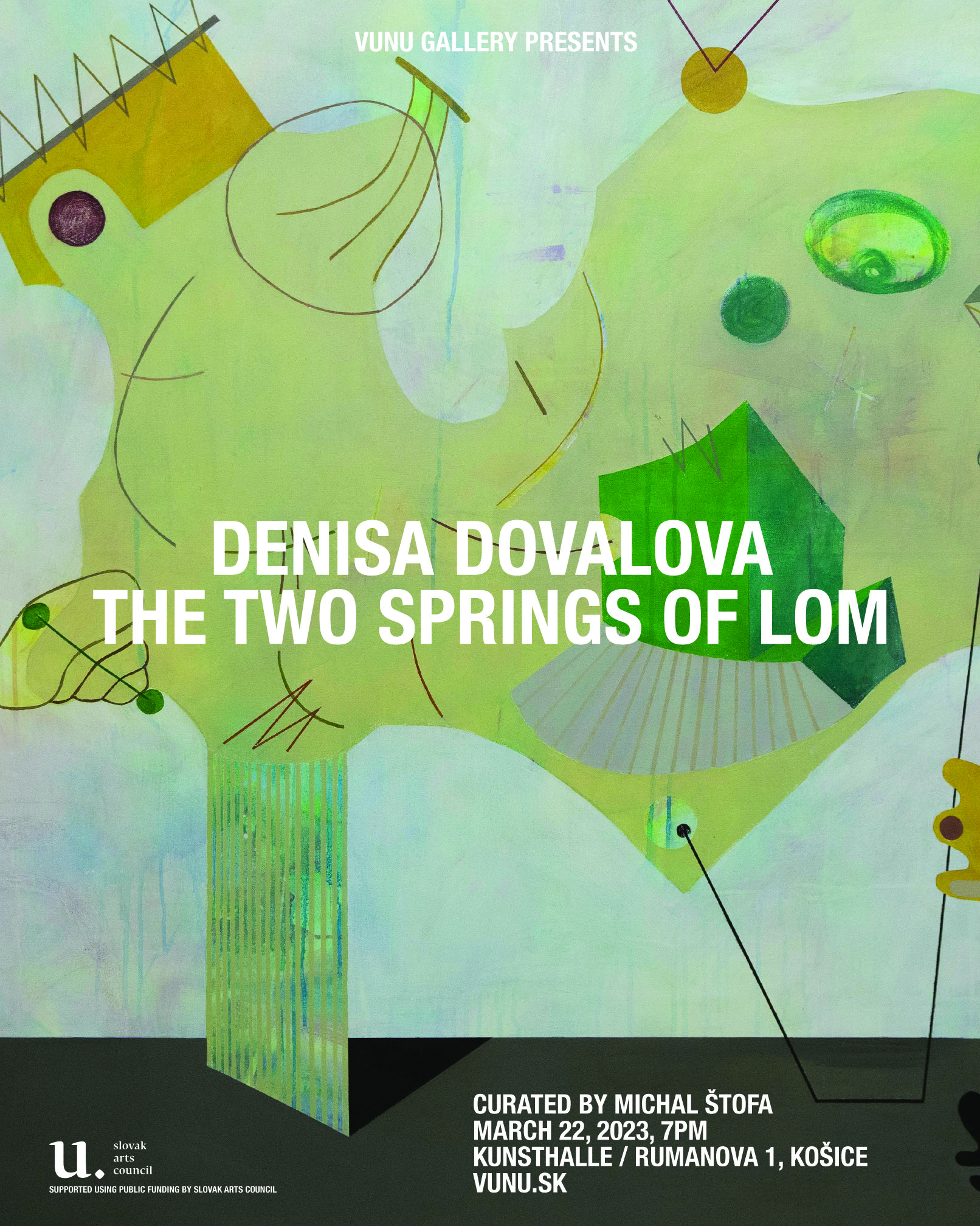 Kurátorka výstavy: Tatiana Takáčová Otvorenie výstavy: 1. 3. 2023 / 19.00 Trvanie výstavy: 2. 3. 2022 — 15. 4. 2023 Miesto: Šopa Gallery, Hlavná 40, Košice Otváracie hodiny: STR - PIA / 15.00 - 18.00, SO / 13.00 - 18.00