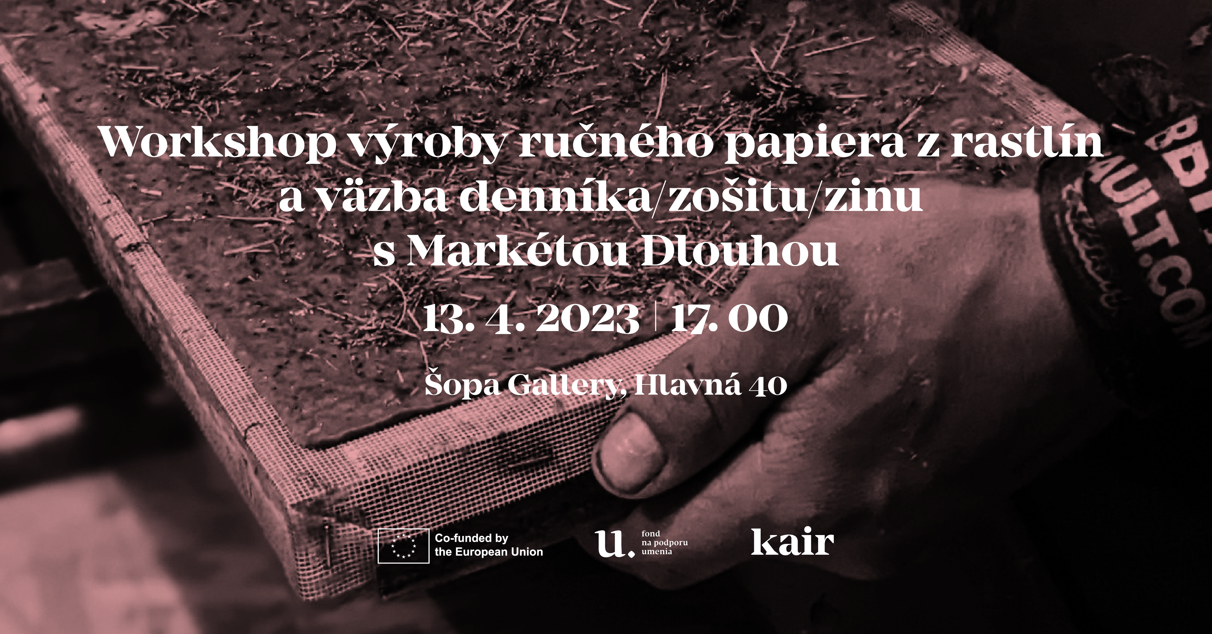 Workshopom výroby ručného papiera z rastlín a väzbou denníkov vás prevedie Markéta Dlouhá, česká umelkyňa, ktorej ekologický prístup zahŕňa upcykláciu a recykláciu materiálov, vrátane výroby papiera zo starého oblečenia, rastlinných vlákien a starého papiera.