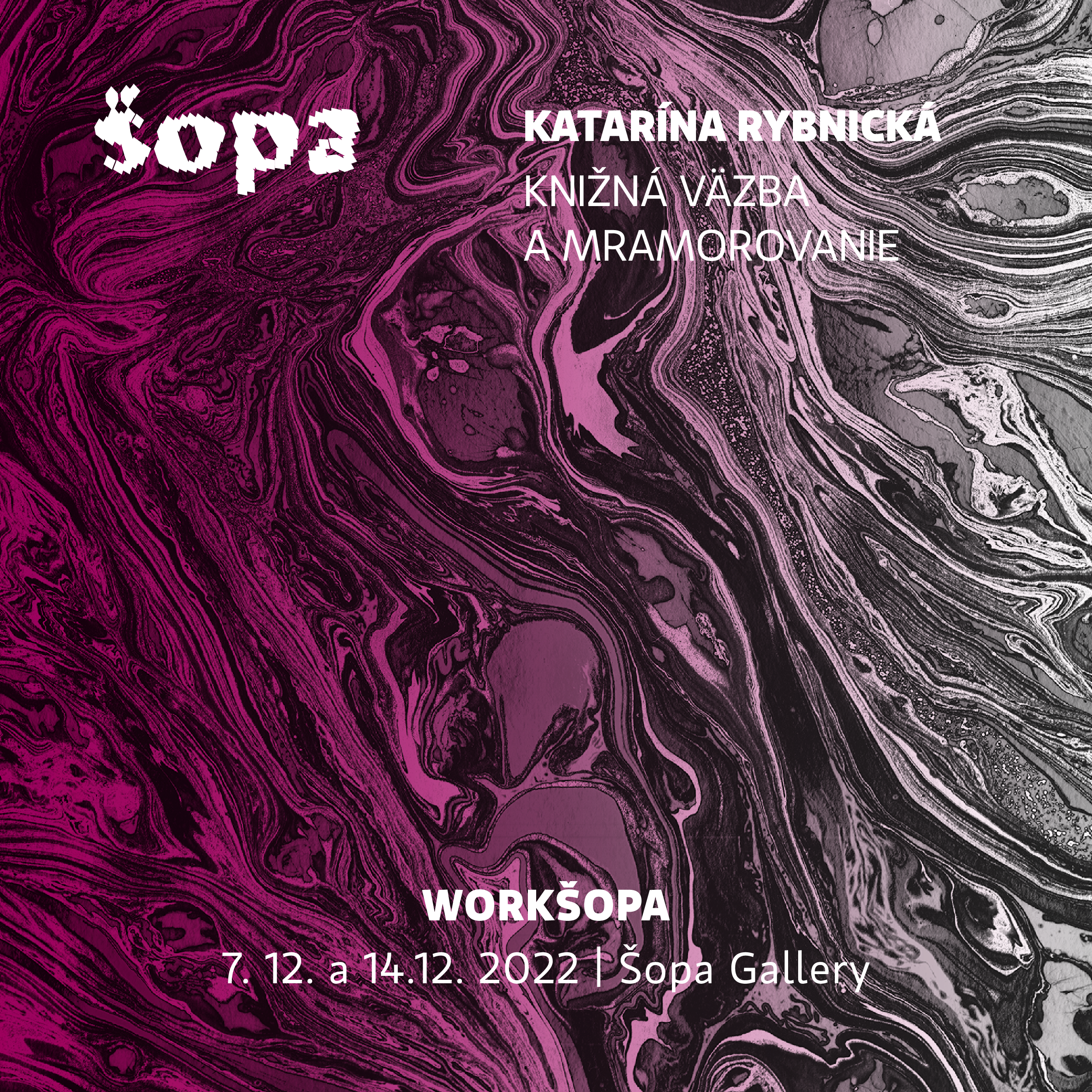 7. 12. 2022 od 17.00 – 20.00 hod. 14. 12. 2022 od 17.00 – 20.00 hod. Šopa Gallery, Hlavná 40, Košice