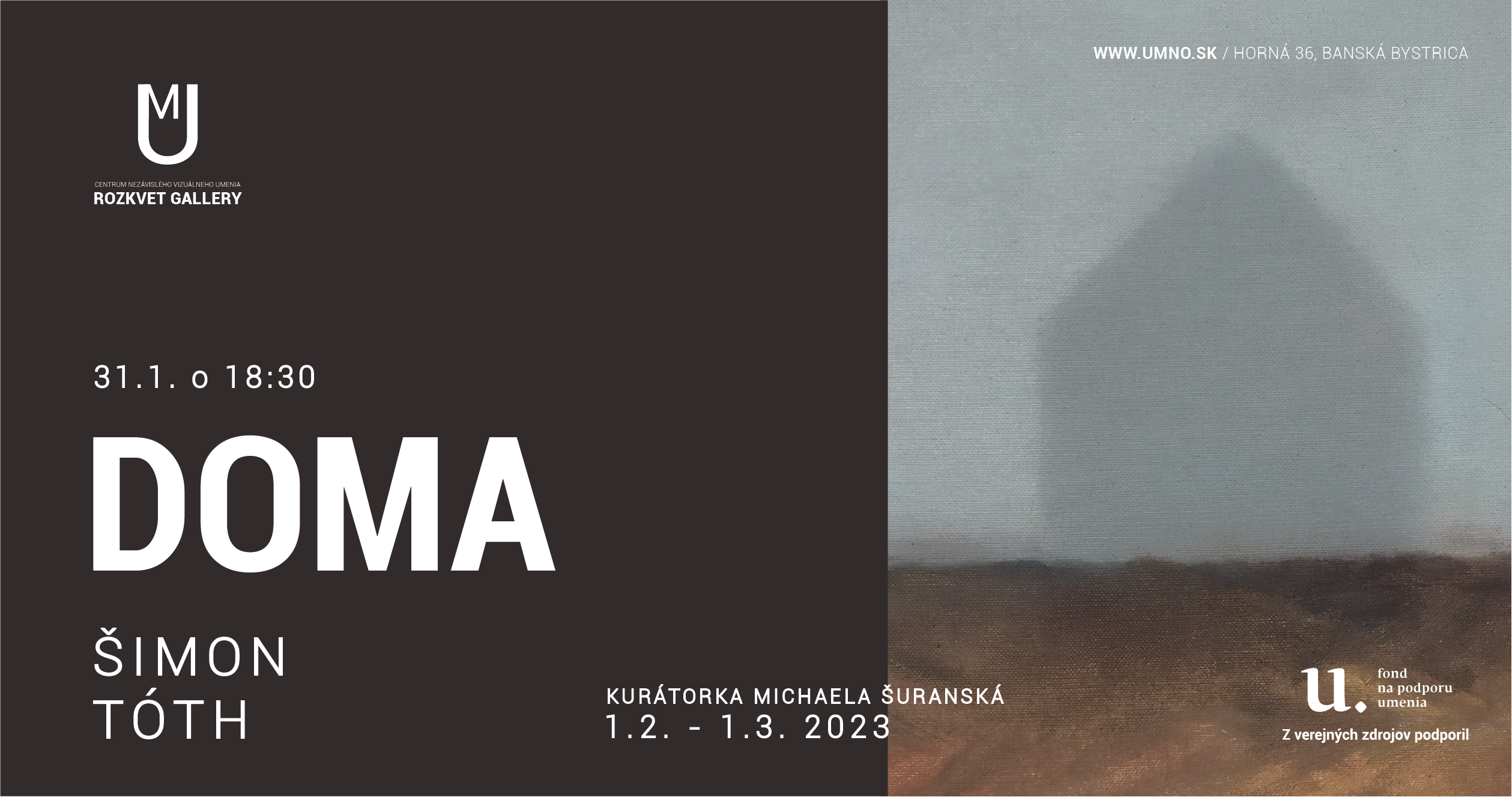 Doma / výstava Šimona Tótha v Rozkvet Gallery / vernisáž: 31.1. o 18:30 hod / trvanie výstavy: 1.2. – 1.3. 2023 / kurátorka: Michaela Šuranská / Rozkvet Gallery, Horná 36, Banská Bystrica