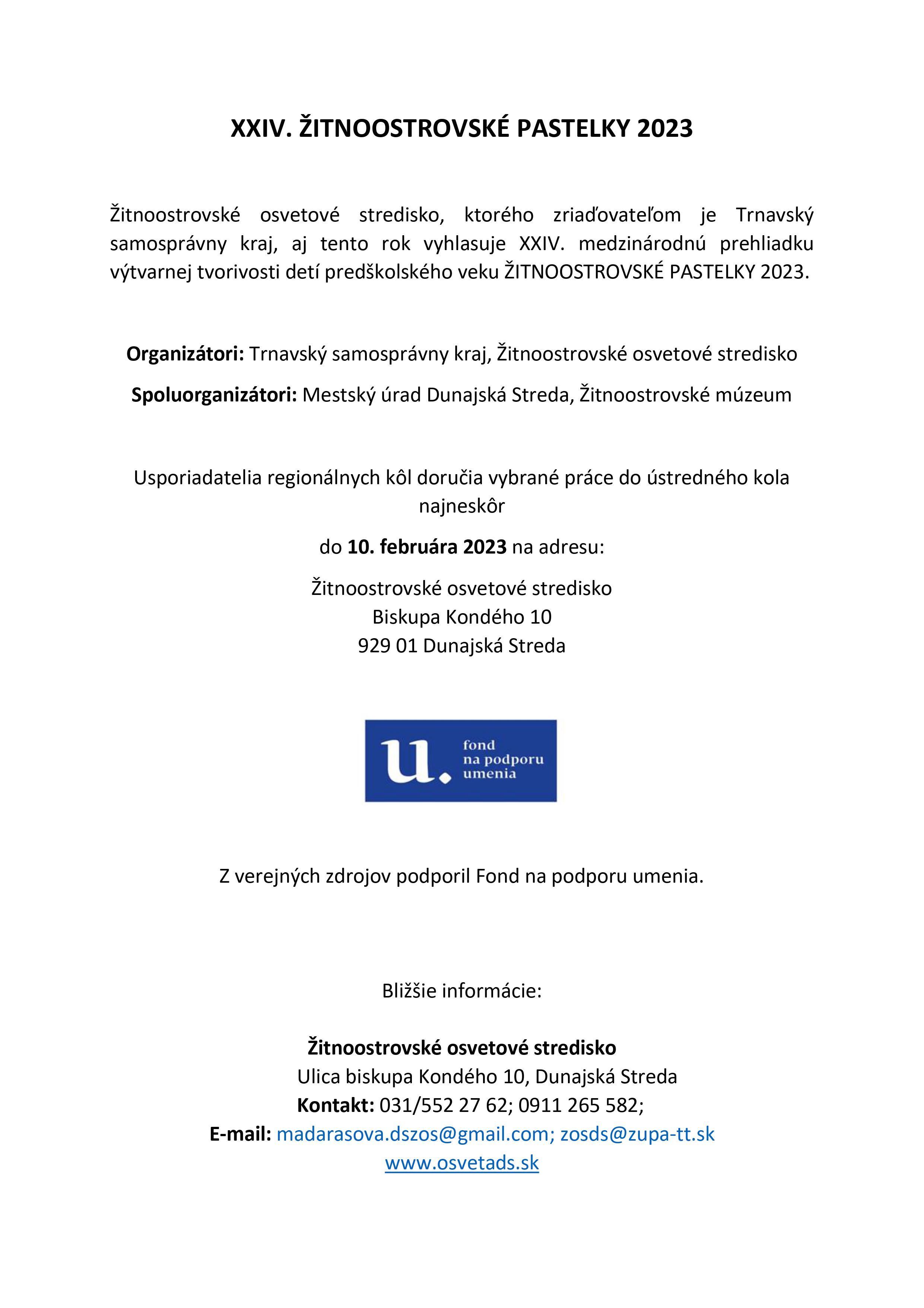 XXIV. Žitnoostrovské pastelky 2023 – medzinárodná súťaž výtvarnej tvorivosti detí predškolského veku Posolstvá lásky, radosti a nádeje, že svet nebude, ale už teraz je lepší.