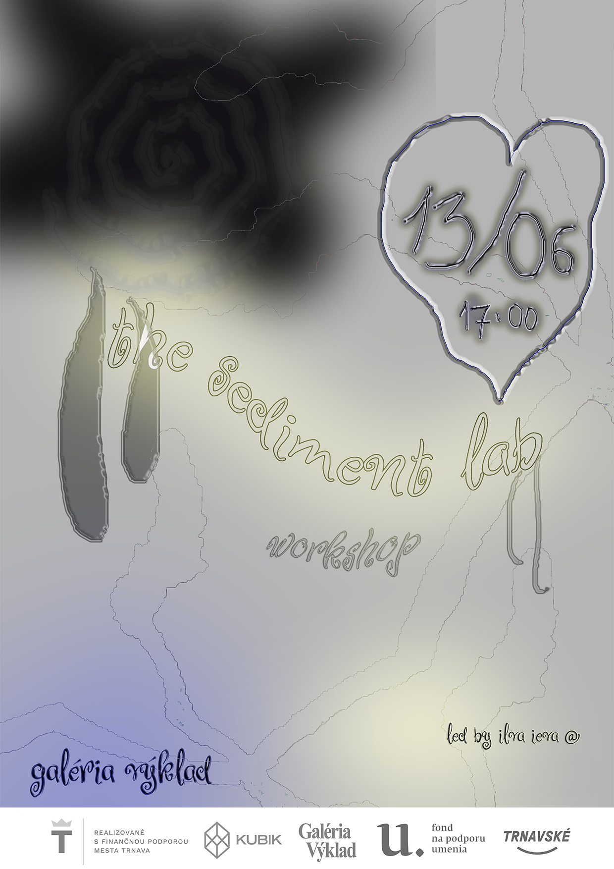 The sediment lab je sprievodným programom k výstave i am sorry i ghosted you, i was post-climaxing, ktorej autorkou je lotyšská umelkyňa Ilva Ieva. V tomto workshope autorka skúma akt nachádzania ako spôsob budovania svetov. Účastníci budú zo zeme (z piesku) odkrývať zakopané objekty – ako nádoby zabudnutých príbehov a detskej fantázie.