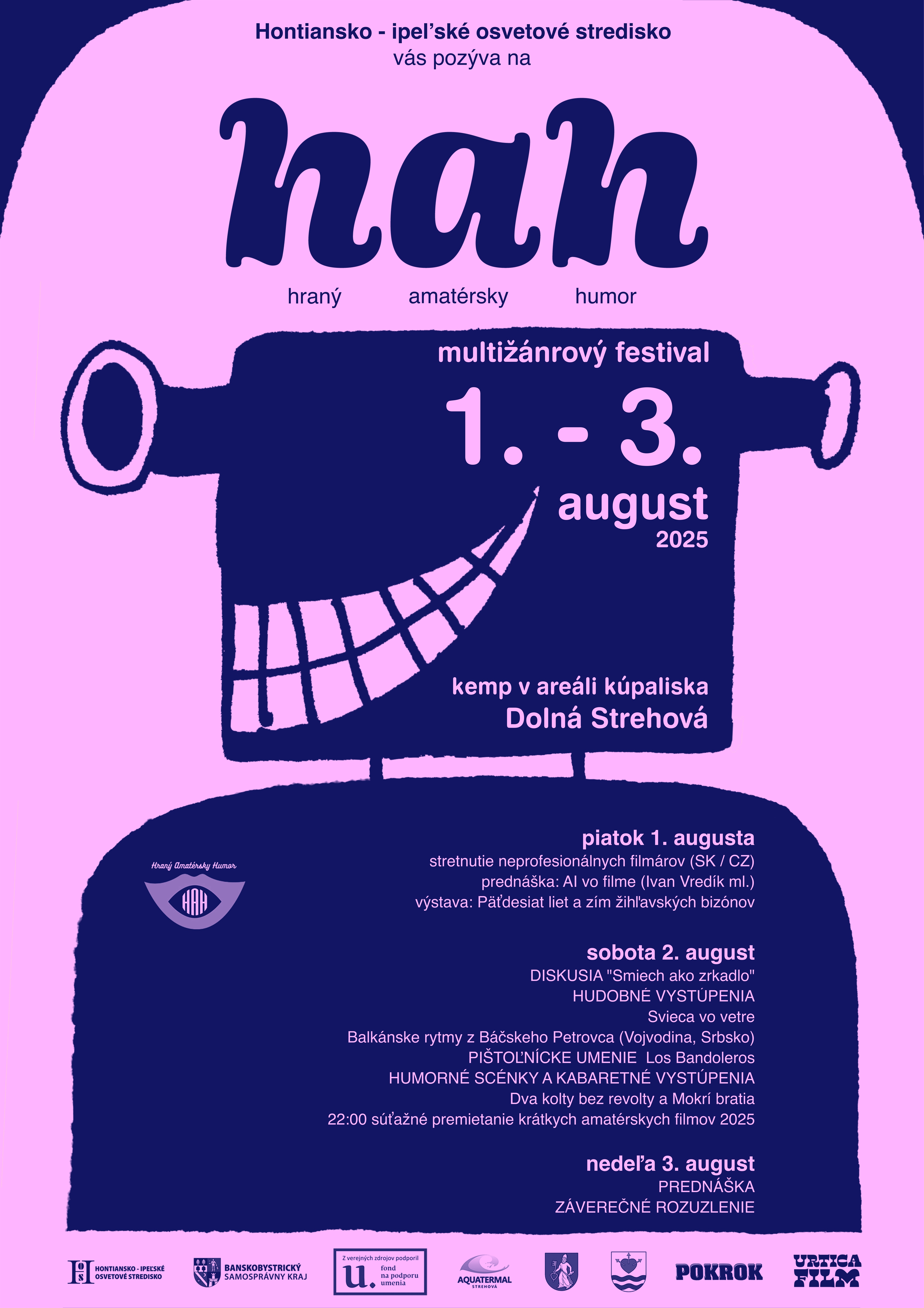 Na festivale HAH 2025 sa stretávajú neprofesionálni filmári zo Slovenska a Českej republiky. Čakajú na nich odborné prednášky, diskusie a kultúrny program. Filmový festival vyvrcholí súťažnou projekciou krátkych humorných filmov.