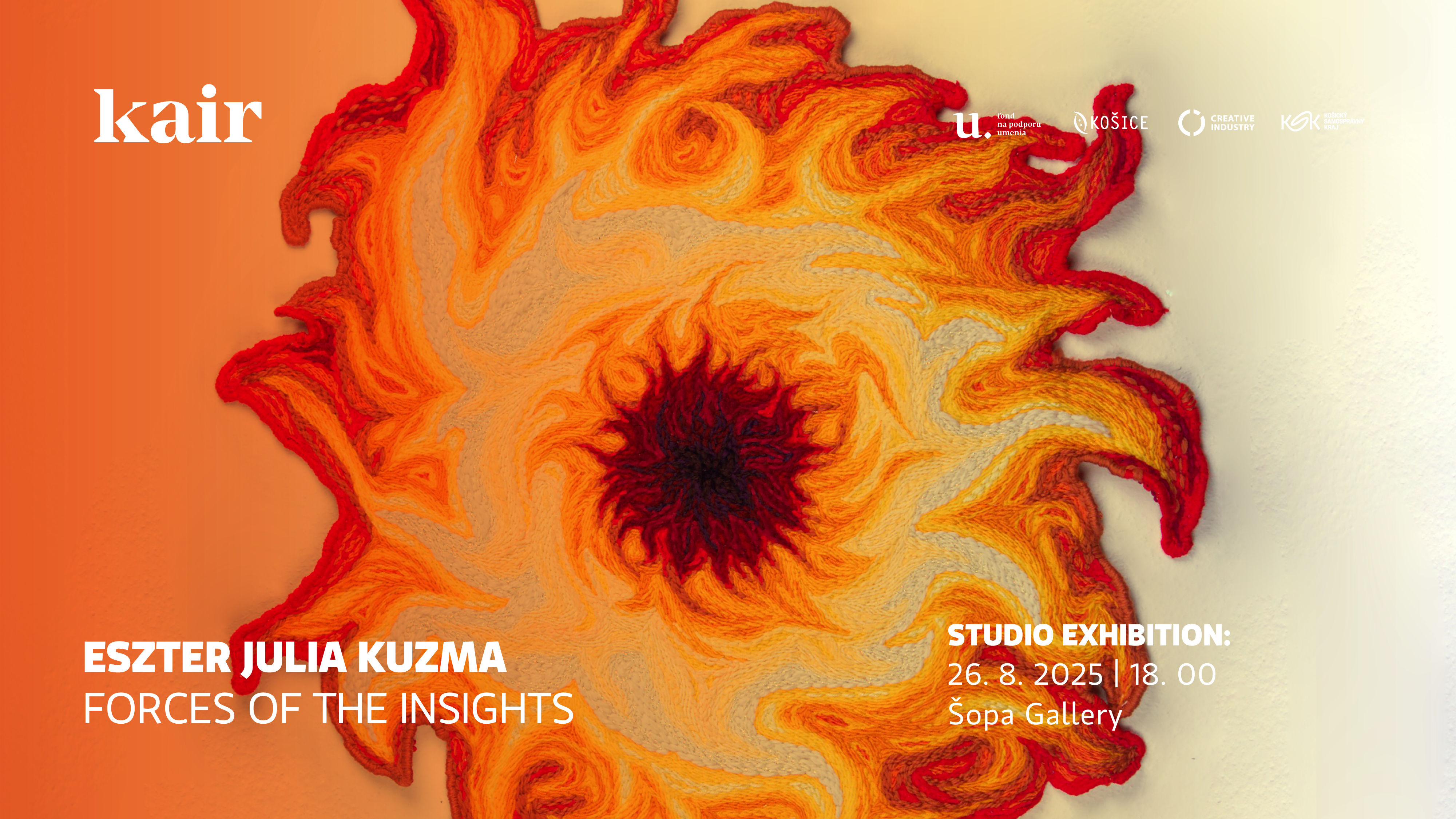 Studio exhibition 26.8. o 18:00 Šopa Gallery Pozývame vás na pop-up štúdiovú výstavu umelkyne Eszter Julie Kuzmy, ktorá predstaví projekt FORCES OF THE INSIGHTS, na ktorom pracovala počas svojej trojmesačnej rezidencie v Košiciach.