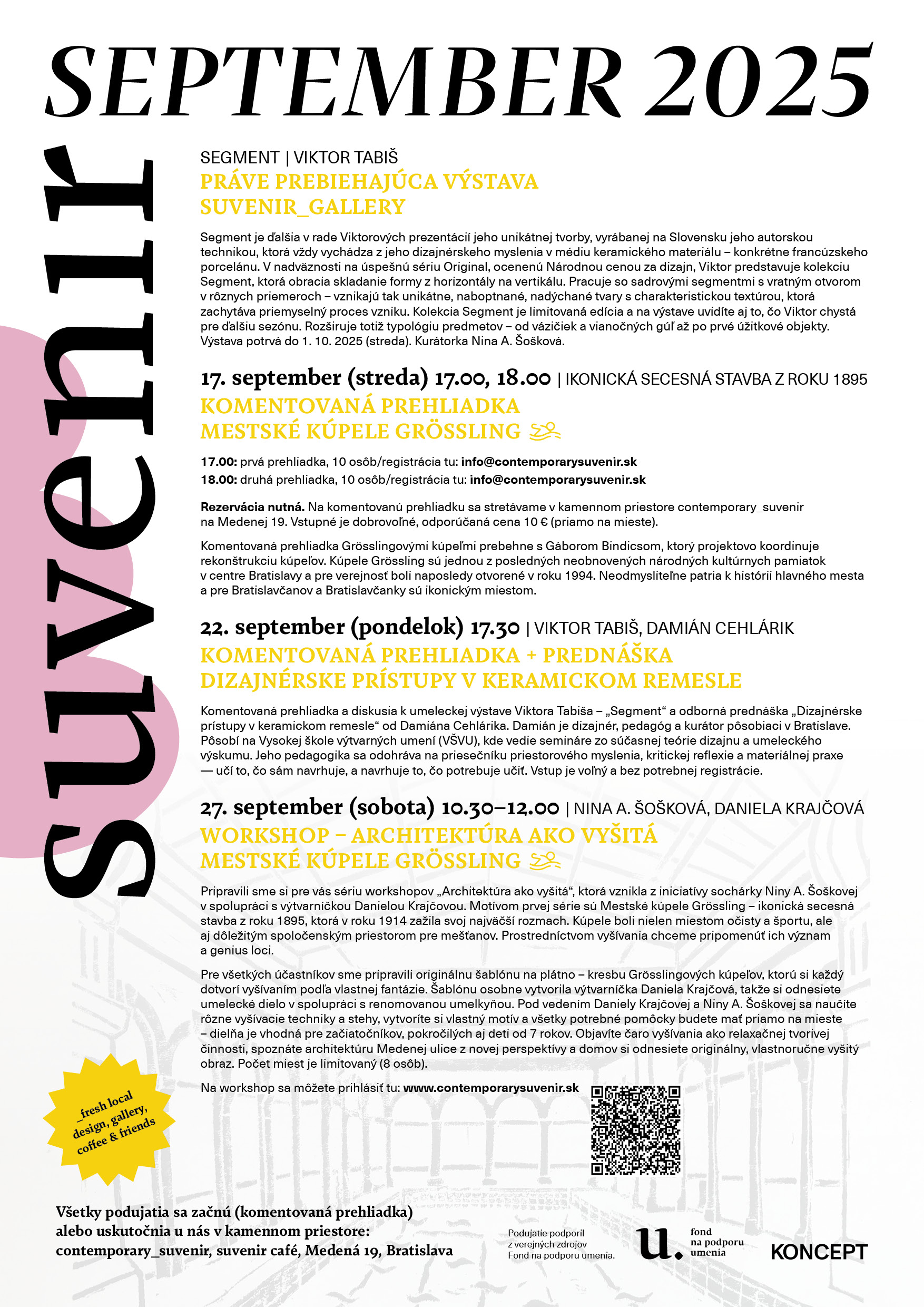 Program na celý mesiac September v suvenir gallery určený pre širokú verejnosť.