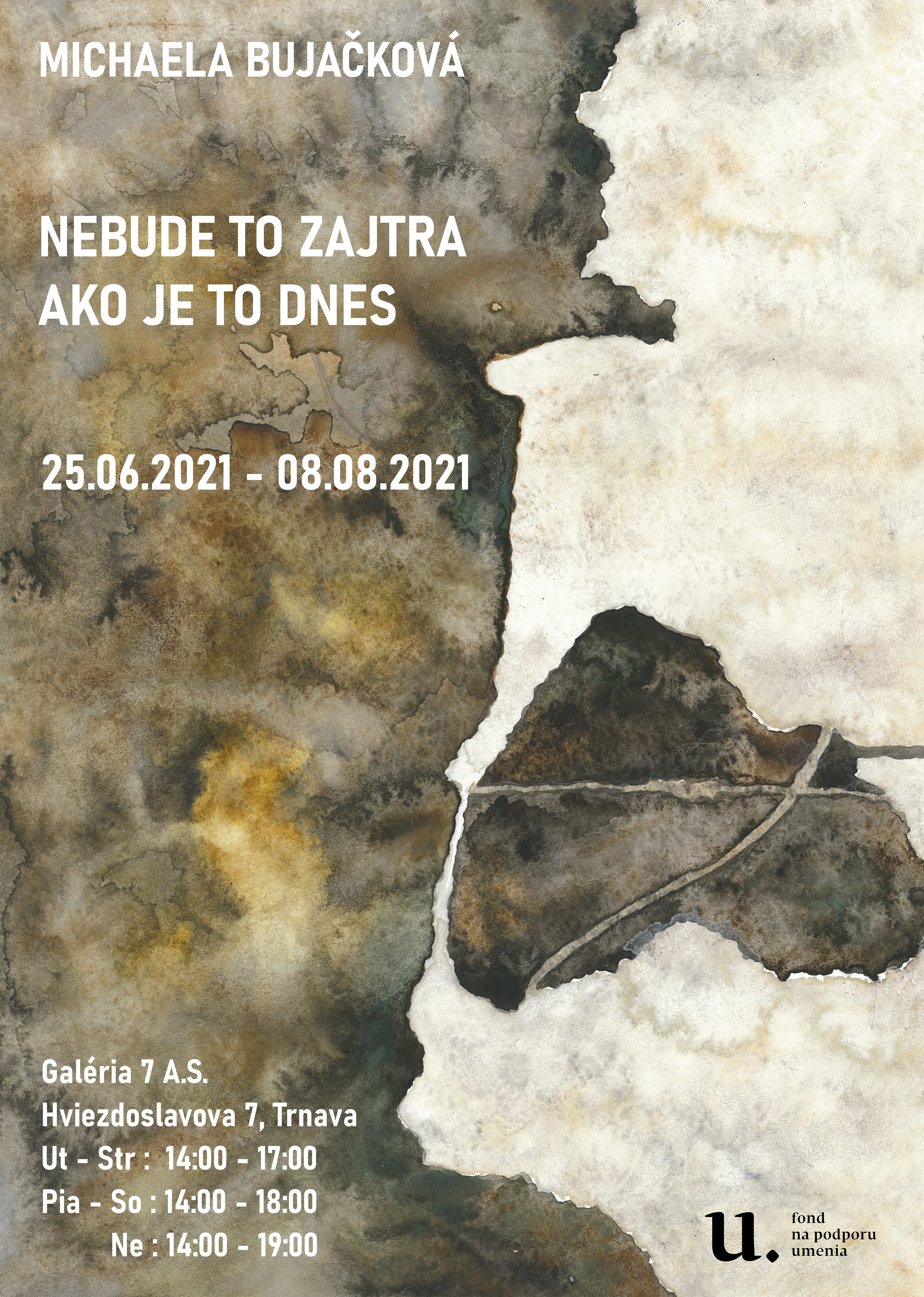 Výstava projektu Nebude to zajtra ako je to dnes predstavuje umeleckú tvorbu Michaely Bujačkovej, ktorá zobrazuje jej reflexiu na tému pozorovania krajiny. Zaoberá sa skúmaním prostredia, v ktorom žije, dopadom krajiny na ľudskú existenciu a rovnako dopadom ľudskej existencie na krajinu.