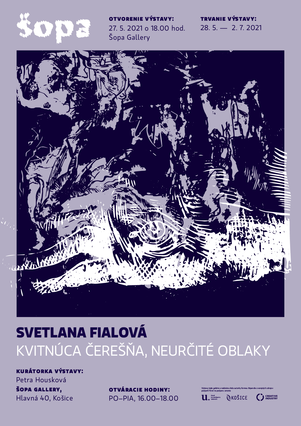 Kurátorka výstavy: Petra Housková Otvorenie výstavy: 27. 5. 2021 o 18.00 Trvanie výstavy: 28. 5. ― 2. 7. 2021 Otváracie hodiny: PO – PIA, 16.00 — 18.00 Šopa Gallery, Hlavná 40, Košice