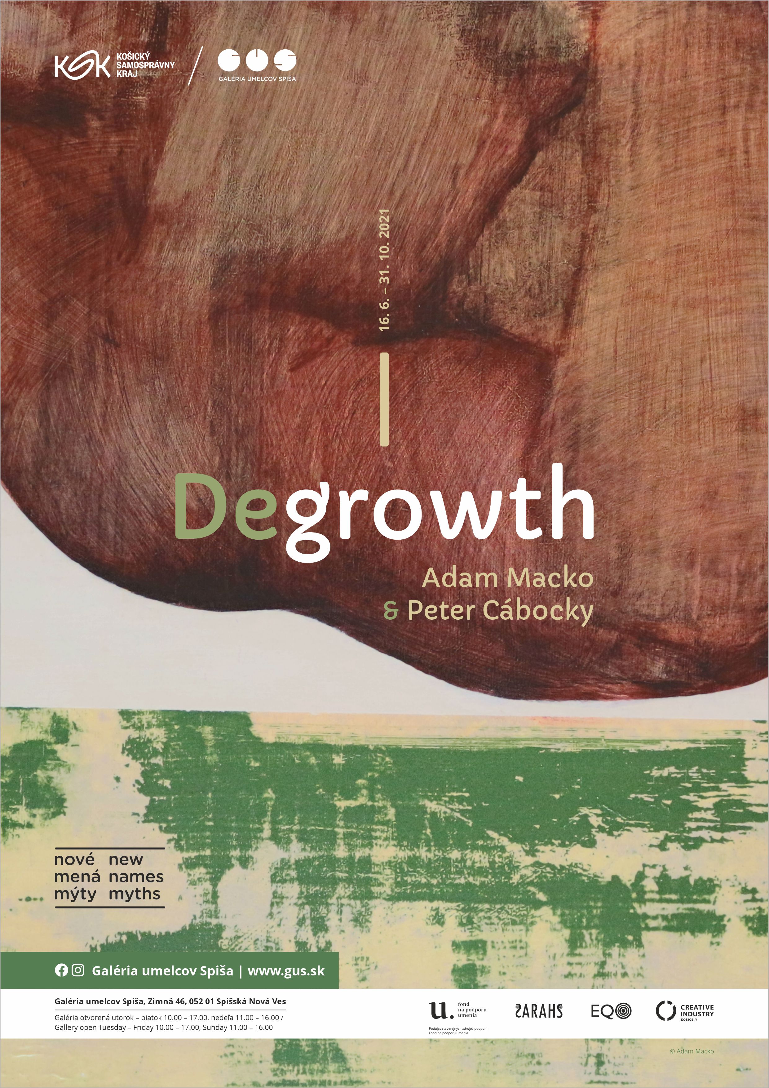 Premiérový výstavný projekt pod názvom DEGROWTH – Adam Macko & Peter Cábocky skúma vzťahy medzi post-minimalistickou maľbou a myšlienkou ne-rastu, pomocou autorských stratégií dematerializácie, deskillingu zarytosti tvoriť maloformátové a neambiciózne maľby, či kritickej práce s režimami viditeľnosti. Miesto konania: Galéria umelcov Spiša, Zimná 46, 05201 Spišská Nová Ves.