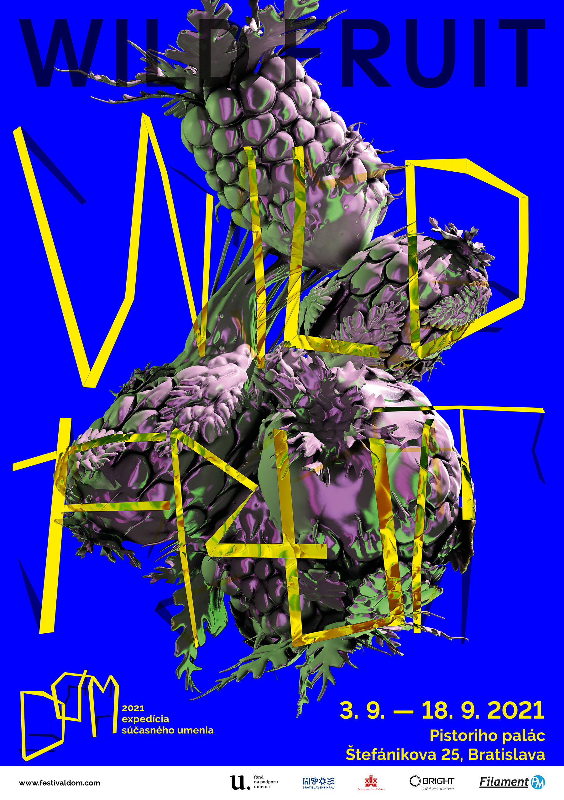 WILD FRUIT 3. 9. – 18. 9. 2021 7. Ročník festivalu DOM sa konal v Pistoriho paláci počas dvoch týždňov aj so sprievodným programom. Výstavný projekt vizuálneho umenia založený na umeleckej participácií etablovaných umeleckých dvojíc ale aj jednotlivcov, ktorí reagovali na tému Wild Fruit. Interiér aj exteriér paláca poskytol autorom priestor pre site-specific inštalácie a hudobné vystúpenia.
