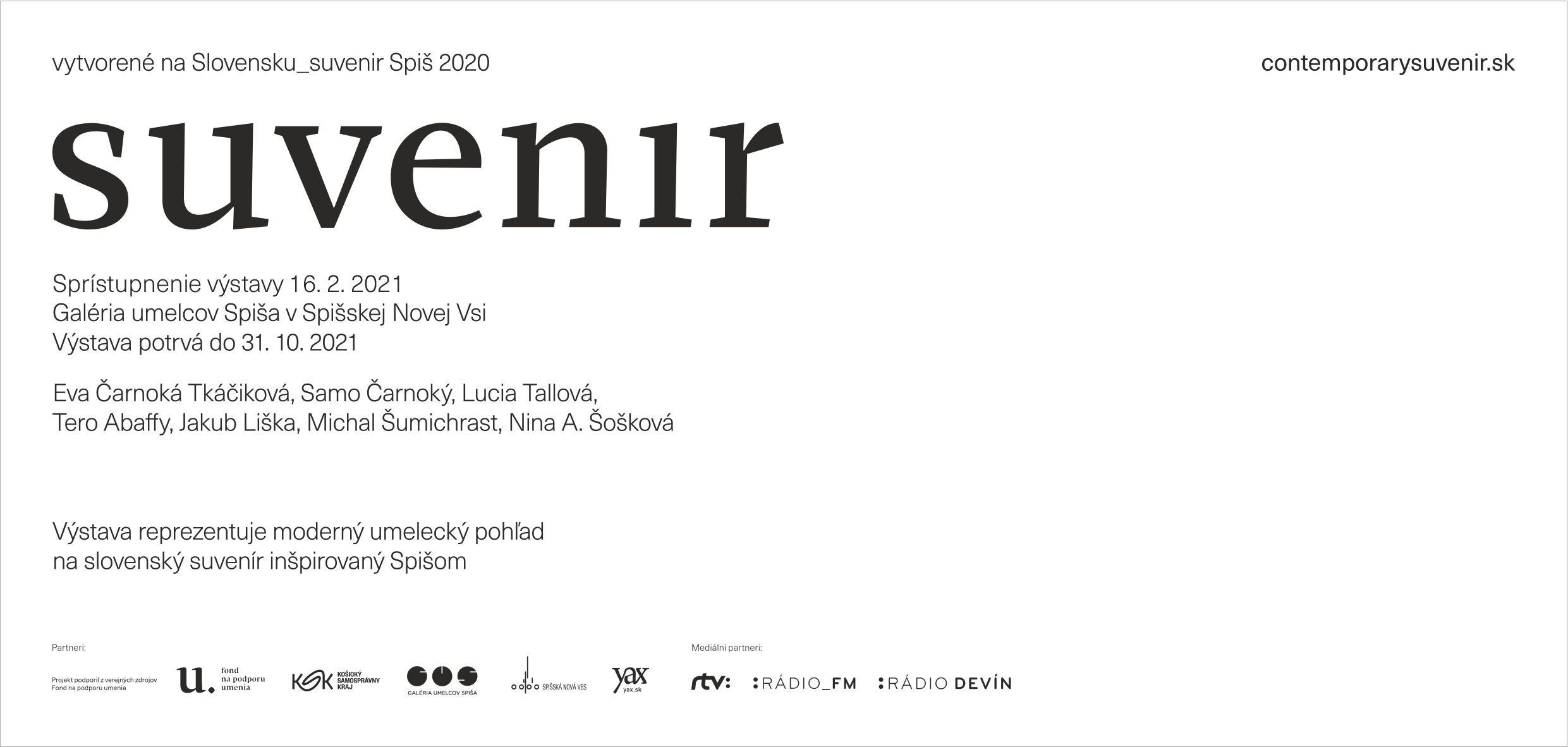 Máme úspešne za sebou 5. ročník projektu, tentokrát inšpirovaný Spišským regiónom. A teraz vás pozývame na výstavu finálnych suvenírov "vytvorené na Slovensku_suvenir Spiš 2020"! Od prizvaných umelcov a dizajnérov vznikli počas umeleckej rezidencie v regióne (20-23.8.2020) hodnotné návrhy reprezentujúce moderný umelecký pohľad na súčasný suvenír zo Slovenska. Diela/suveníry inšpirované Spišom nájdete in medias res vystavené v Galérii umelcov Spiša od 16.2. s trvaním do 31.10. 2021!