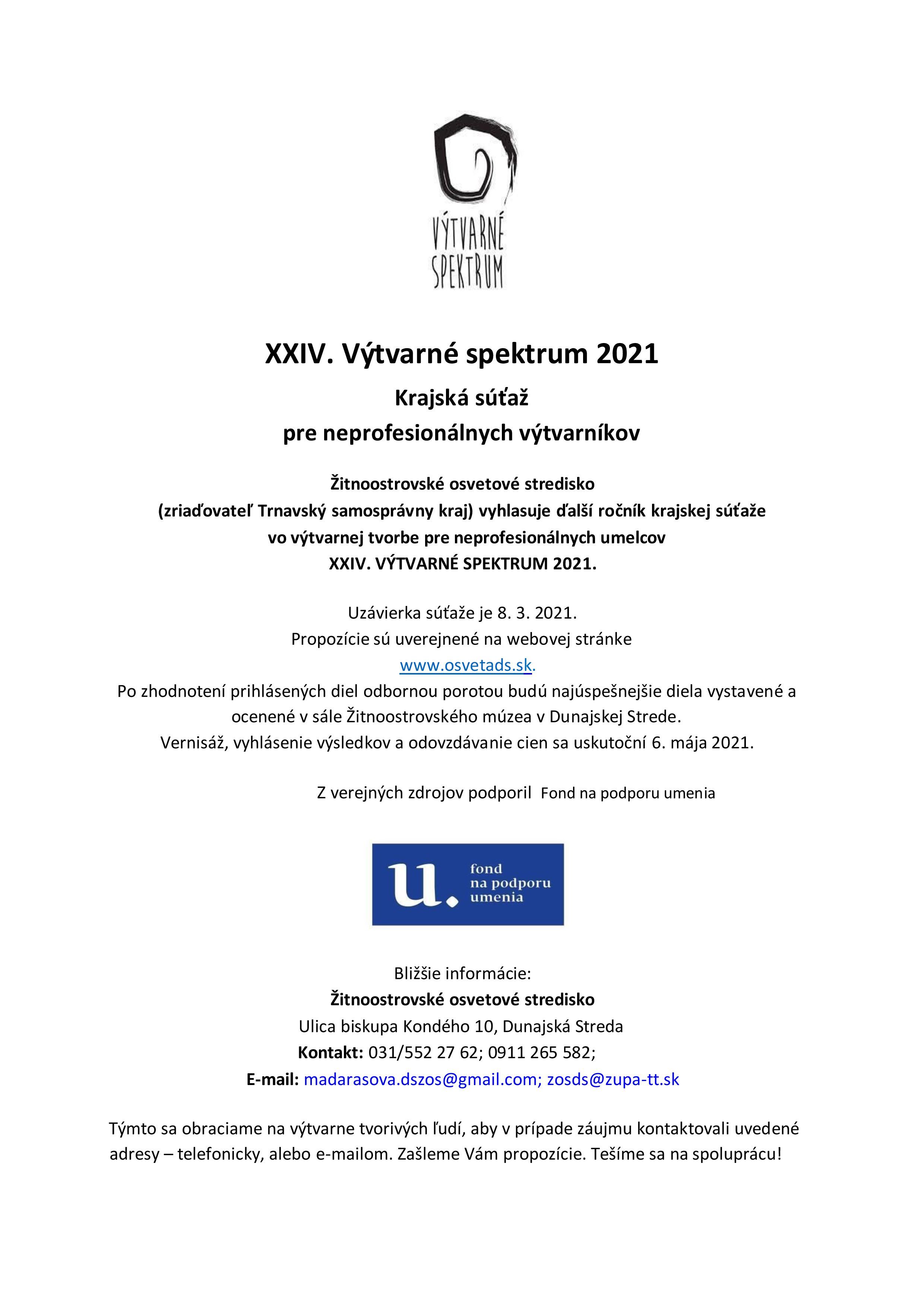 XXIV. Výtvarné spektrum 2021 - krajská súťaž neprofesionálnej výtvarnej tvorby
