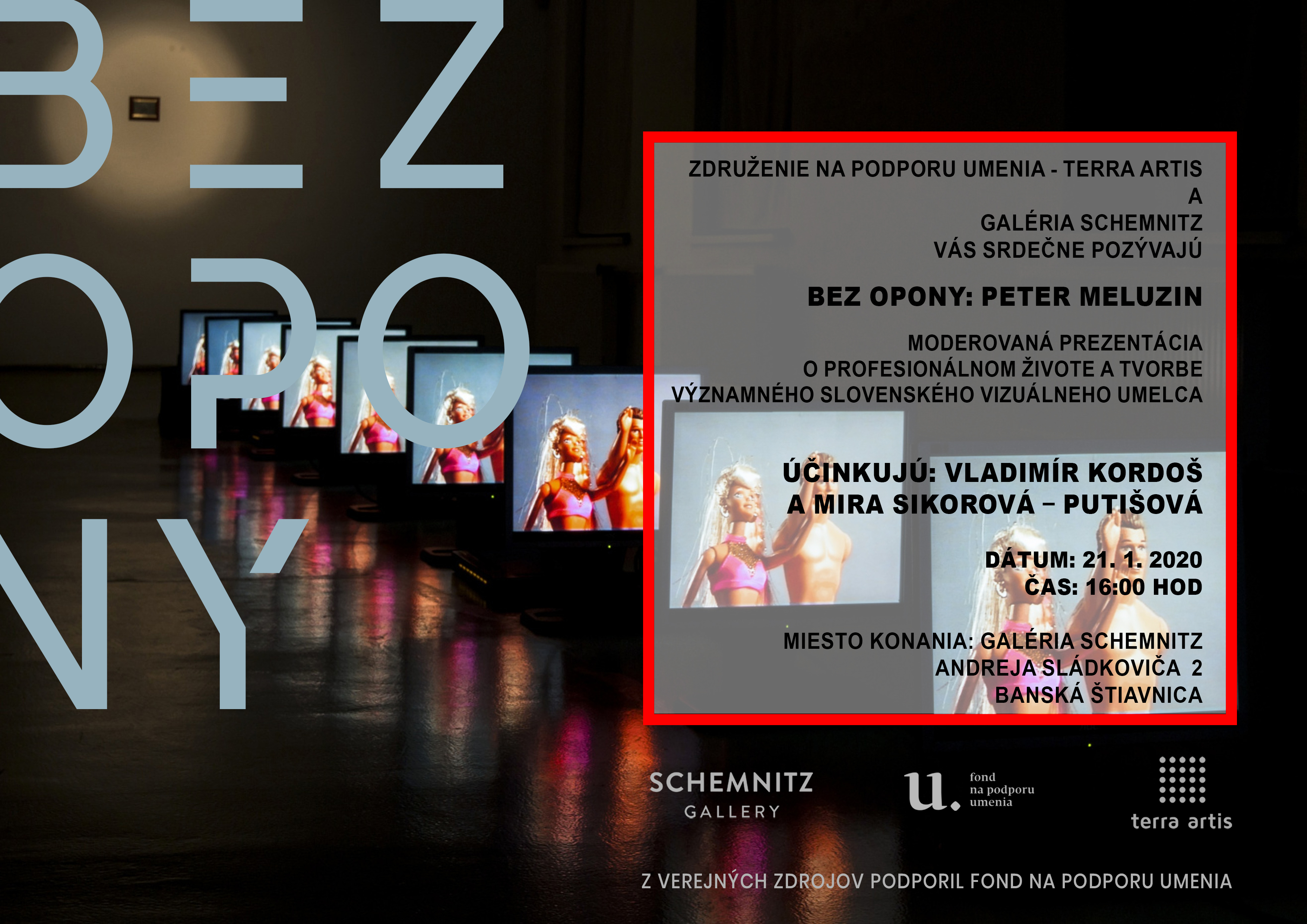 Moderovaná prezentácia o tvorbe a živote nedávno zosnulého Petra Meluzina. Diskusiu bude viesť Mira Sikororvá-Putišová s Vladimírom Kordošom, umelcom a dlhoročným priateľom Petra Meluzina.