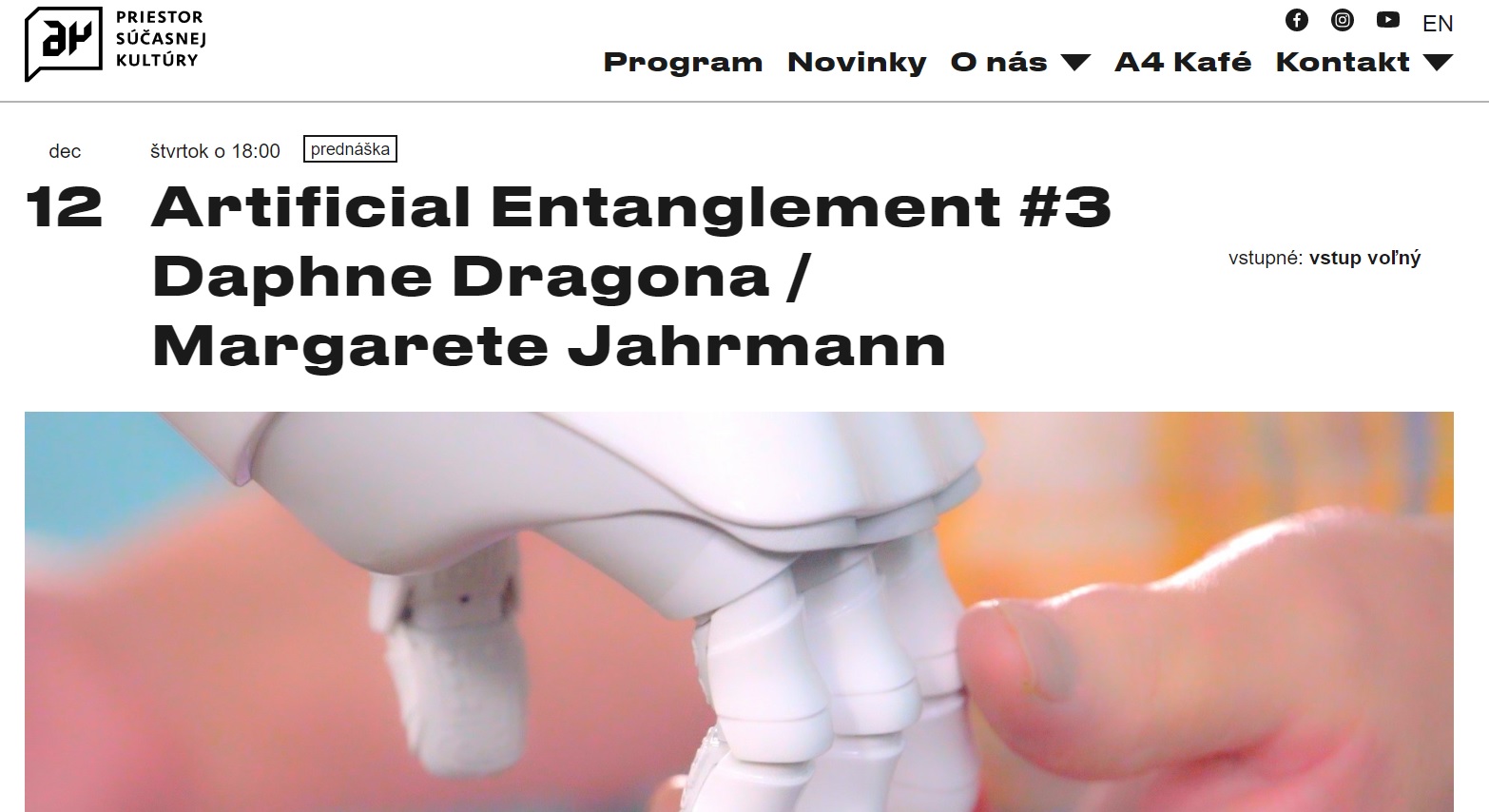 Čo znamená slovné spojenie “technológie starostlivosti?” Akým spôsobom mení každodenný život prítomnosť milučkých robotov a AI asistentov? Už teraz žijeme v čase, keď sa hravé a neúnavné stroje bez prestávky učia od nás a reagujú na naše potreby a túžby. Spôsob, akým sme my, ľudia, ovplyvnení neurovedeckým výskumom, možno priblížiť hravým mise-en-scène laboratórnych podmienok v každodennom živote.