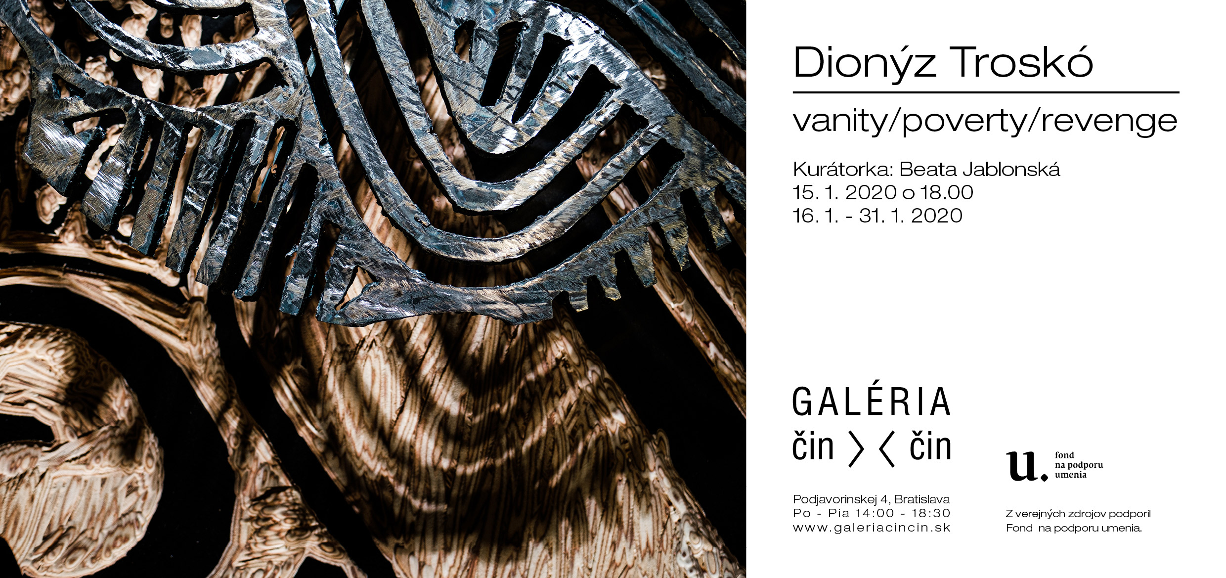 Výstavný program Galérie Čin Čin na svojej poslednej výstave predstavuje netradičný projekt mladého známeho sochára D Troskó, ktorý z preglejkových a oceľových platní vytvára formy, na ktorých tlačí svojskou technikou grafiky