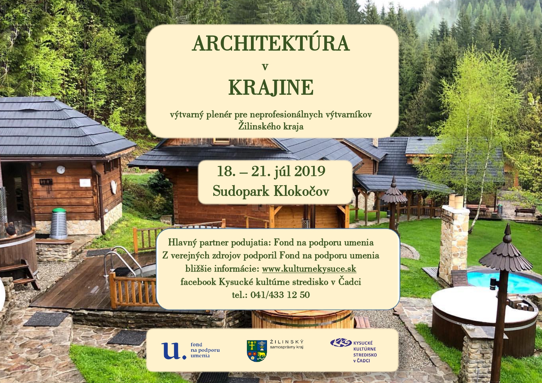 Projekt ARCHITEKTÚRA V KRAJINE pozostáva z plenéra pre neprofesionálnych výtvarníkov Žilinského kraja a výstavy výtvarných prác. Jeho cieľom je podporiť výtvarníkov v ich tvorbe, poskytnúť im priestor k vzájomnému obohateniu sa, inšpirovaniu a spoznaniu výtvarnej tvorby výtvarníkov v rámci kraja. Počas 4 dní budú výtvarníci tvoriť pod odborným dohľadom lektorov, vzájomne diskutovať o svojej tvorbe a skúšať nové techniky výtvarnej tvorby. Výstava bude realizovaná v jednotlivých regiónoch kraja.