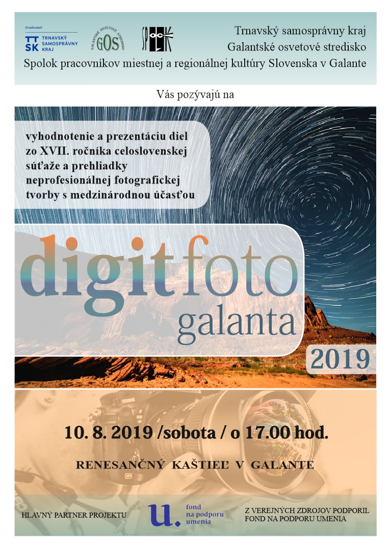Spolok pracovníkov miestnej a regionálnej kultúry Slovenska v Galante v rámci podpory fotografických aktivít vyhlásil v roku 2019 XVII. ročník celoslovenskej súťaže a prehliadky neprofesionálnej fotografickej tvorby s medzinárodnou účasťou pod názvom Digitfoto Galanta. Hlavným zámerom súťaže a prehliadky Digitfoto Galanta je vytvárať priestor na prezentáciu a konfrontáciu výsledkov práce v oblasti neprofesionálnej fotografickej tvorby.