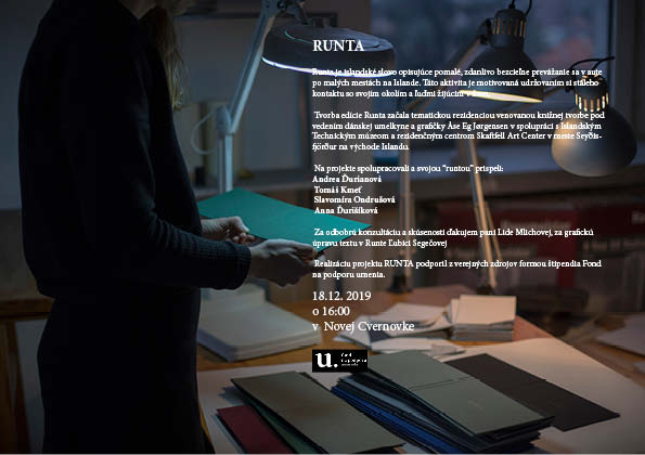 Tvorba edície Runta začala tematickou rezidenciou venovanou knižnej tvorbe pod vedením dánskej umelkyne a grafičky Åse Eg Jørgensen v spolupráci s Islandským Technickým múzeom a rezidenčným centrom Skaftfell Art Center v meste Seyðisfjörður na východe Islandu. Na projekte spolupracovali a svojou “runtou” prispeli: Andrea Ďurianová Tomáš Kmeť Slavomíra Ondrušová Anna Ďurišíková Za odbobrú konzultáciu a skúsenosti ďakujem pani Lide Mlichovej, za grafickú úpravu textu Ľubici Segečov