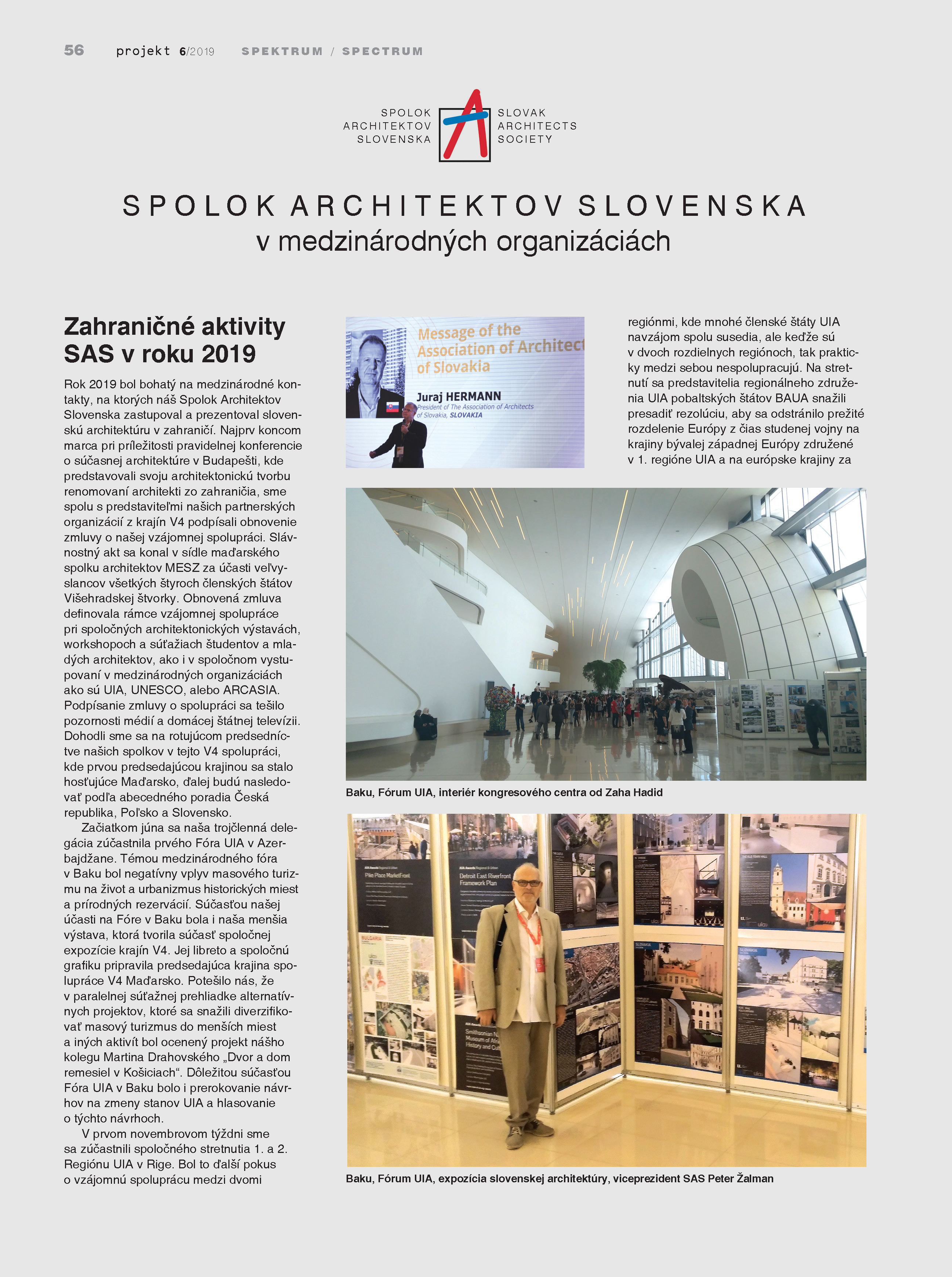 Členstvo Spolku architektov Slovenska v medzinárodných organizáciách a účasť predstaviteľov na medzinárodných podujatiach v roku 2019