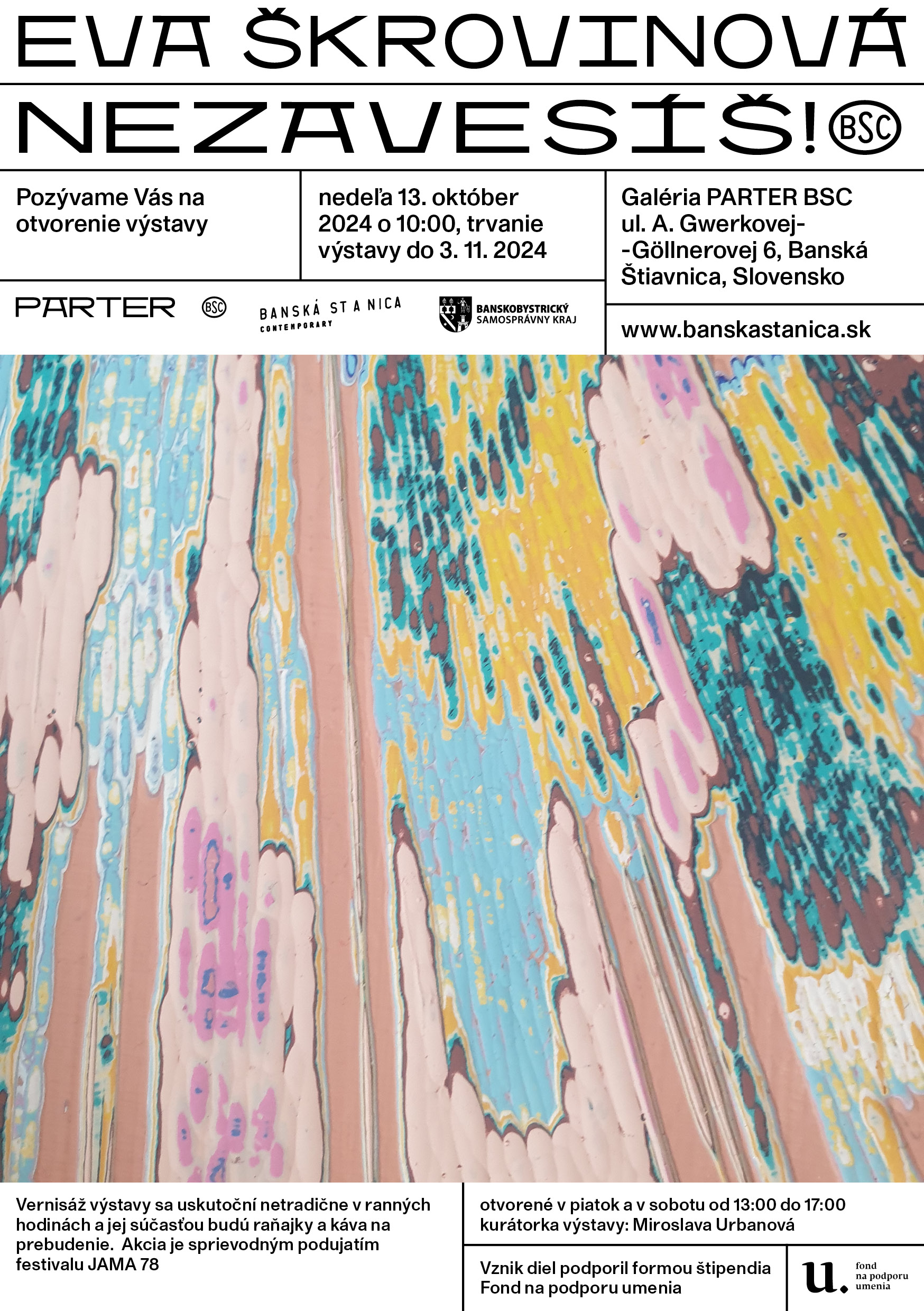 Komentovaná prehladka a stretnutie s autorkou na záver výstavy Nezavesíš! v sobotu 2. 11. 2024 v 14h v Parteru BSC , v Banskej Štiavnici