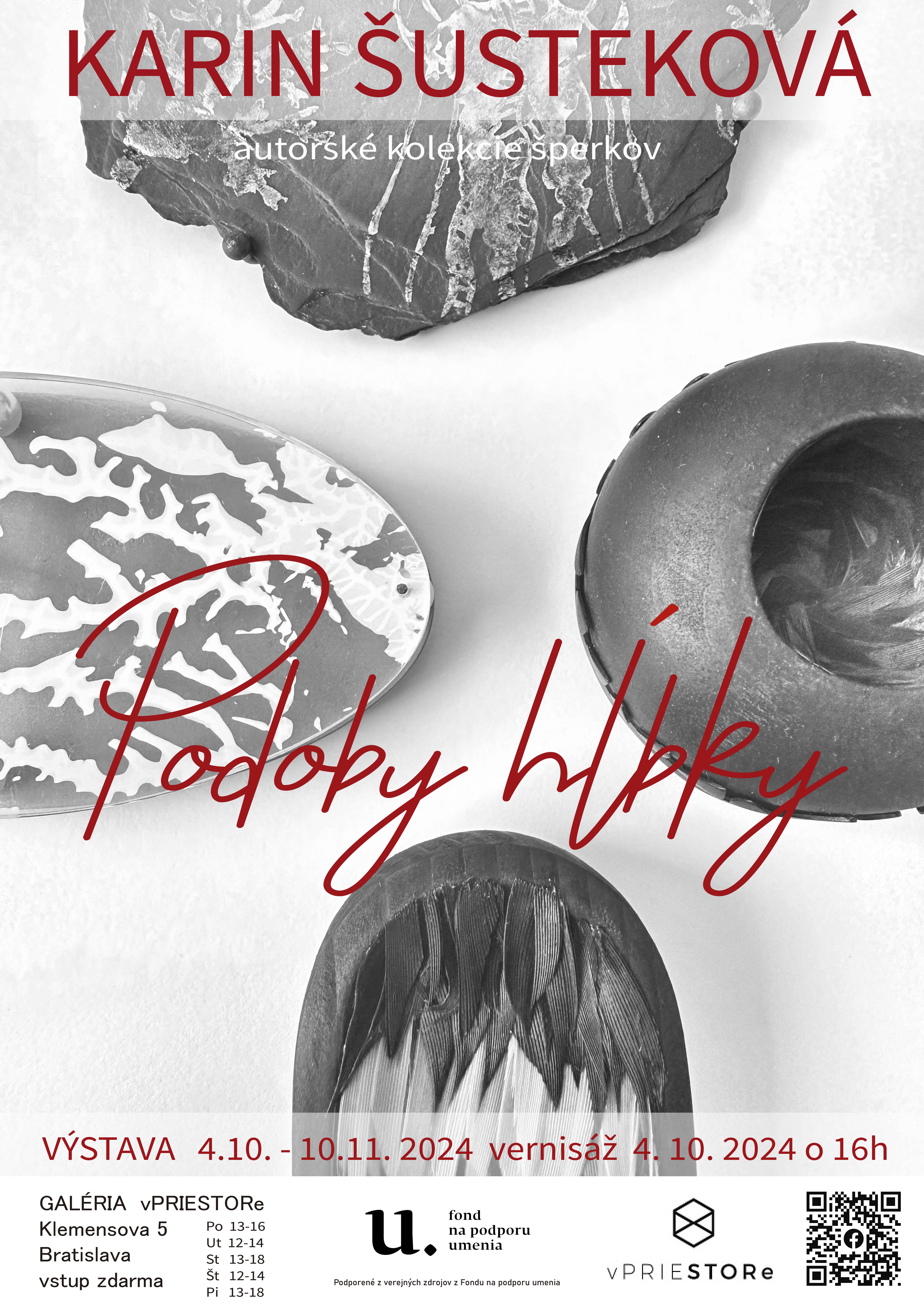 Výstava PODOBY HĹBKY - Karin Šusteková - v galérii vPRIESTORe na Klemensovej ul.5 v Bratislave je súčasťou programu Medzinárodnej konferencie súčasného šperku Šperk Stret 2024 - www.sperkstret.sk a potrvá do 10.novembra 2024