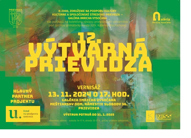 12. ročník kolektívnej výstavy predstaví široké spektrum aktuálnej tvorby prievidzských výtvarníkov. Výstave bude predchádzať výtvarný seminár pre prihlásených autorov, zameraný na spoločný výber diel určených prezentáciu. Súčasťou projektu je i videodokument o významnej osobnosti výtvarnej histórie mesta – akad. mal. Oľge Šarinovej (1960 – 2022). Organizátori ju predstavia i osobitnou kolekciou jej diel.